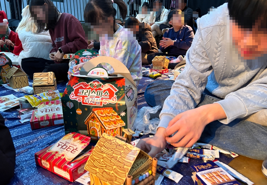 다음은 과자집 만들기를 진행했는데요, 되게 잘만들었죠?