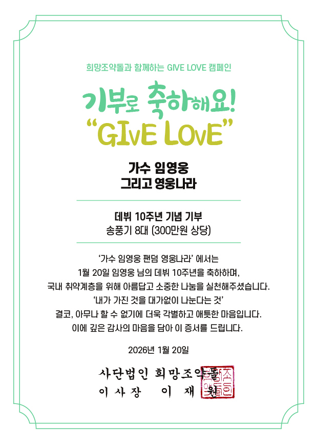 매년 기념일마다 나눔을 실천해온 '영웅나라'는