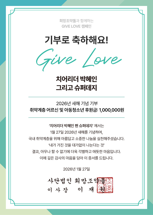 희망조약돌은 팬 '슈퍼데지'님의 진심이
