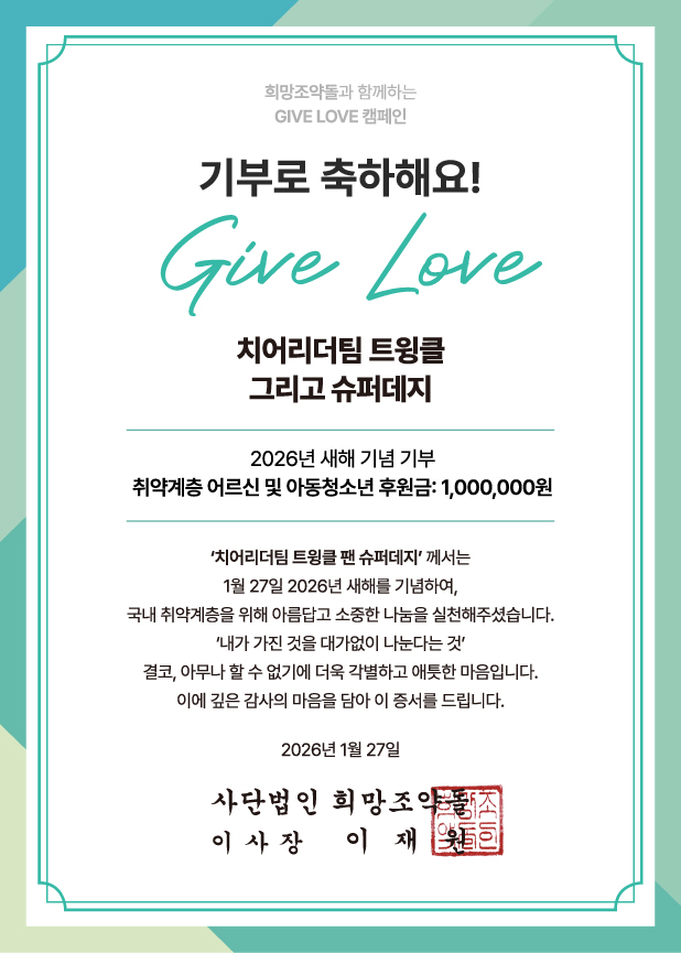 '슈퍼데지'님께서 소외된 이웃을 위한