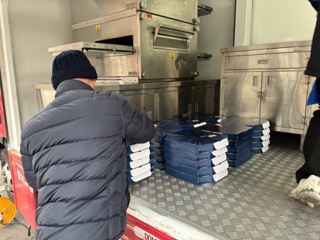 희망파티카가 도착했습니다! 아이들에게 맛있는 피자를 만들어 주기 위해 사전 준비를 시작했어요.