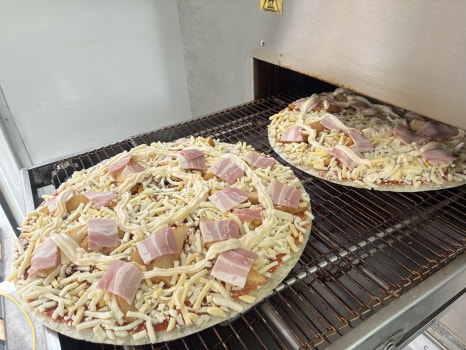현장에서 직접 조리 후 구운 따뜻한 피자입니다.