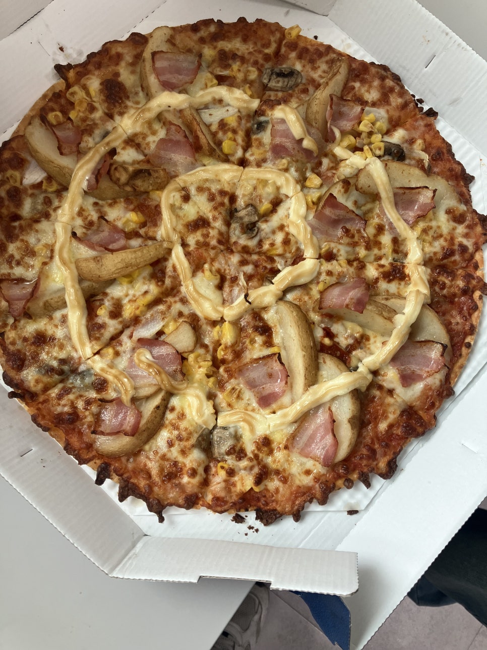 치즈가 쭉 늘어지며 입 안 가득 짭짤한 베이컨 포테이토 피자맛이 퍼졌어요~