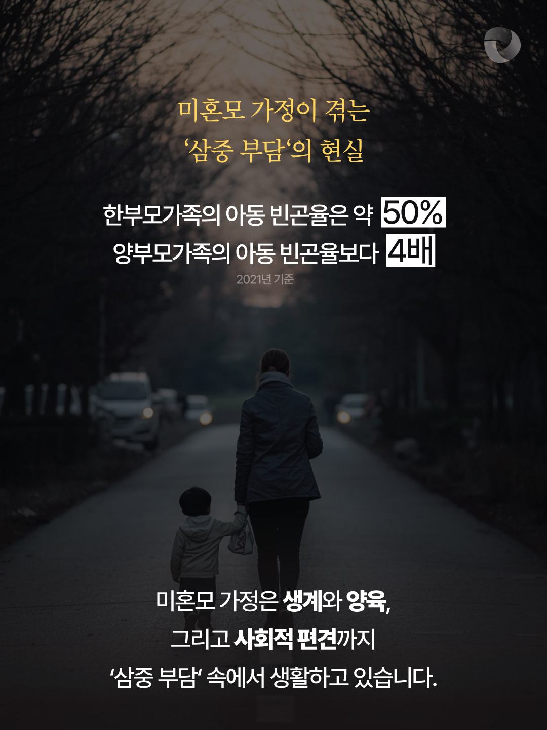 실제로 한 연구에 따르면 2021년 기준 우리나라 한부모가족의 아동 빈곤율은 약 50%로,