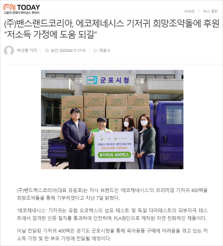 이날 전달된 기저귀 400팩은 경기도 군포시청을 통해