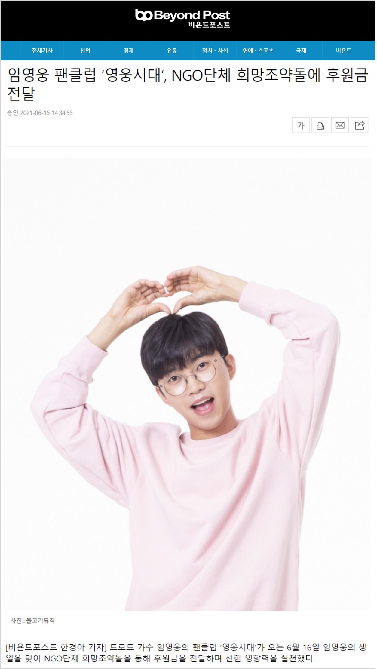 트로트 가수 임영웅의 팬클럽 ‘영웅시대’가
