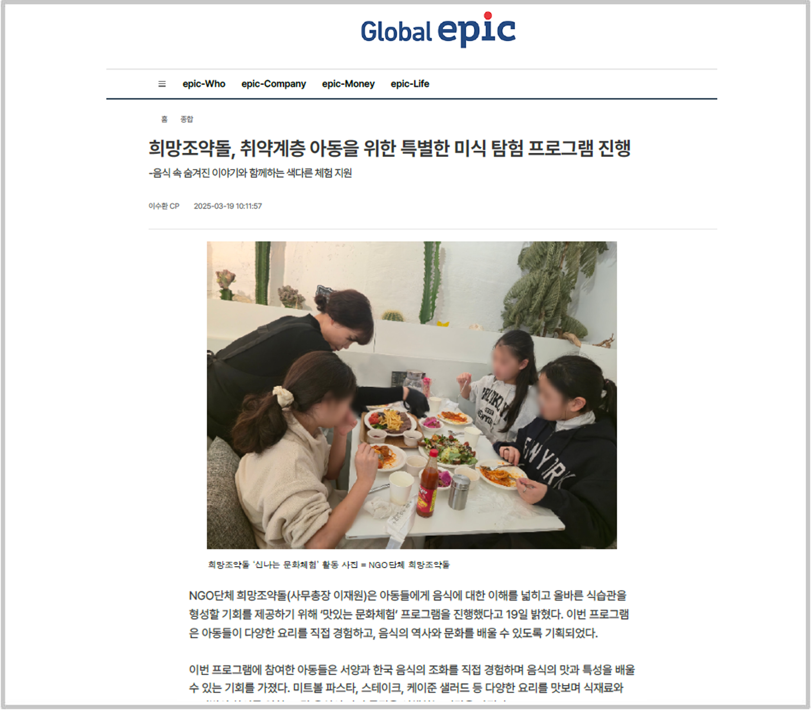 희망조약돌, 취약계층 아동을 위한 특별한 미식 탐험 프로그램 진행
