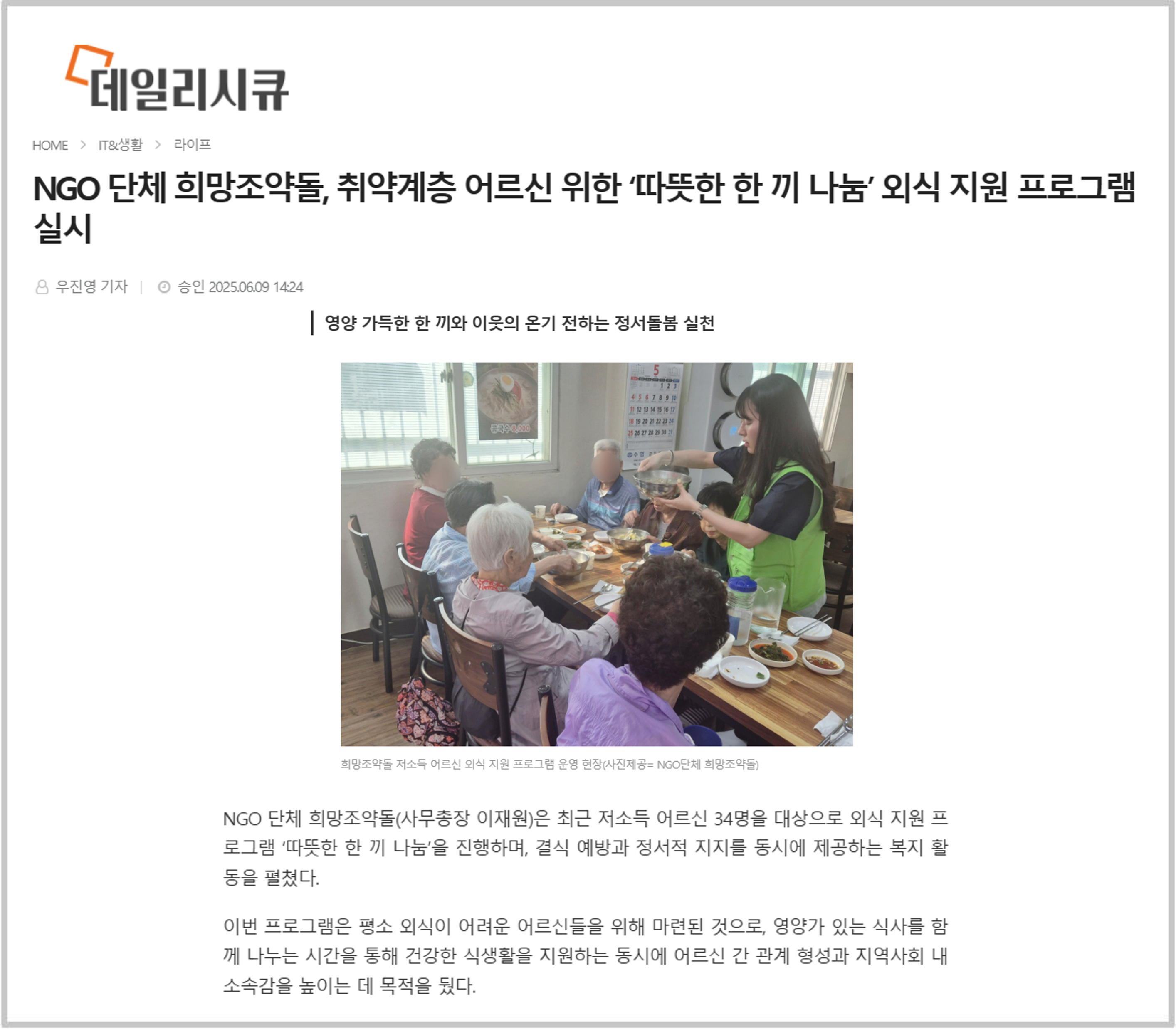 임영웅 팬클럽 ‘영웅시대’, 국내기부단체 희망조약돌에 독거어르신 위한 팬기부