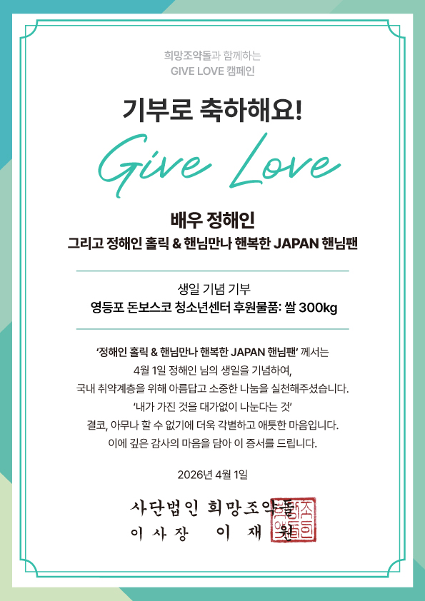 ‘GIVE LOVE’ 팬클럽 기부 캠페인을 통해