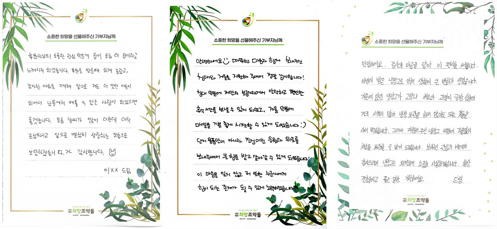 저희 희망조약돌은 정해진 물품을 일괄적으로 전달하는 방식이 아닌,