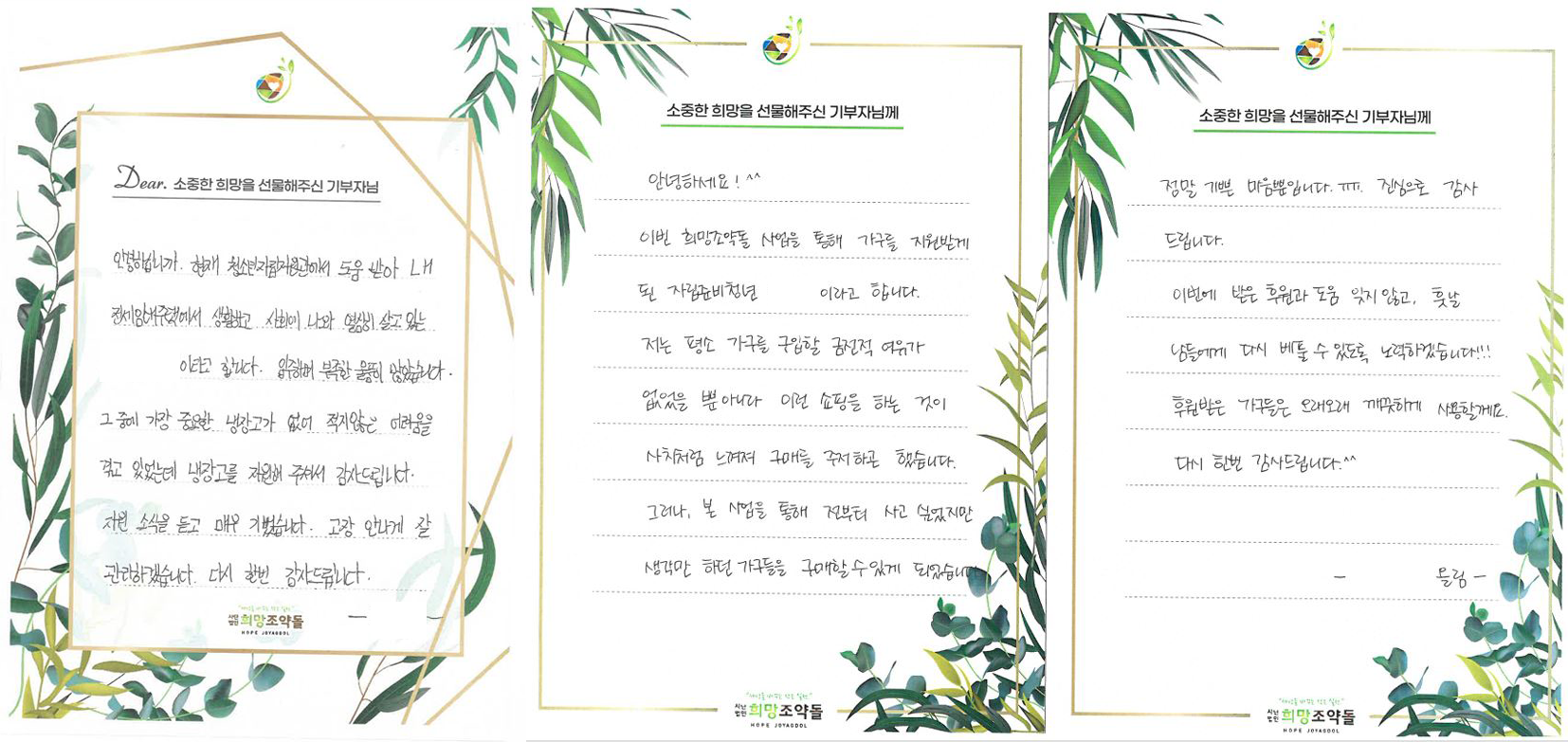 “꼭 필요했지만 미뤄두었던 물품들을 지원받아 큰 힘이 되었다”