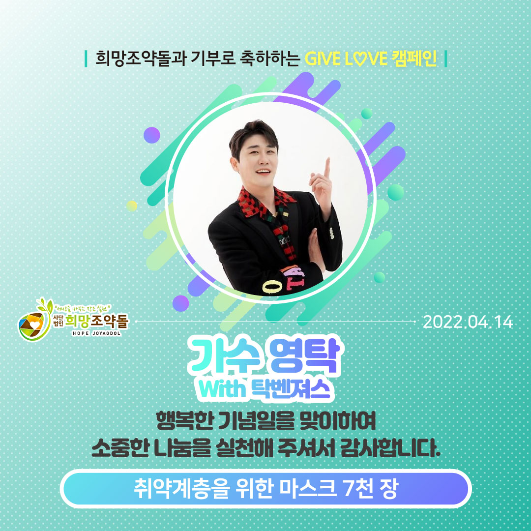 “선한 영향력을 실천하는 가수 영탁님의 동행길에 '탁벤져스'가 함께 합니다"