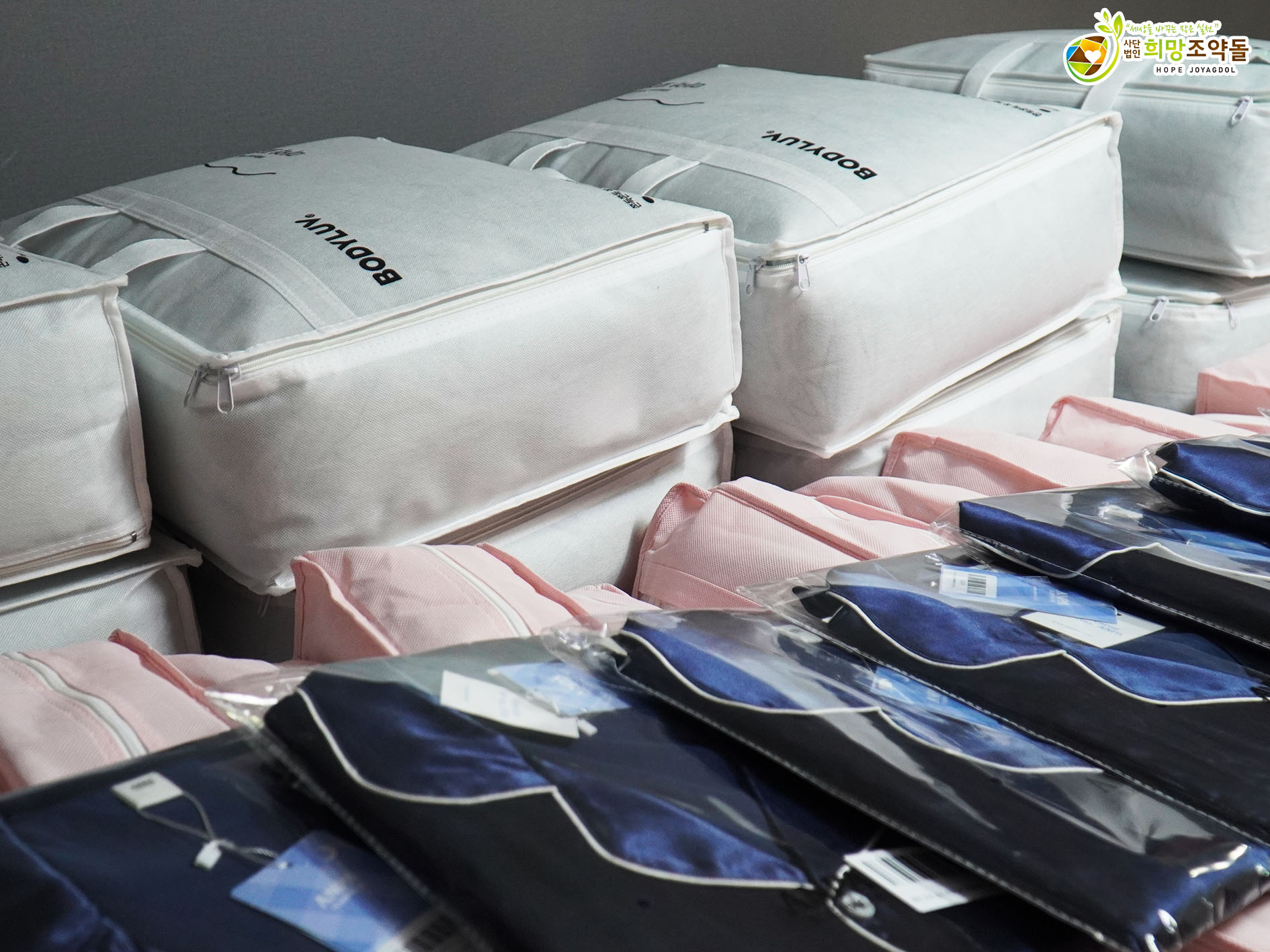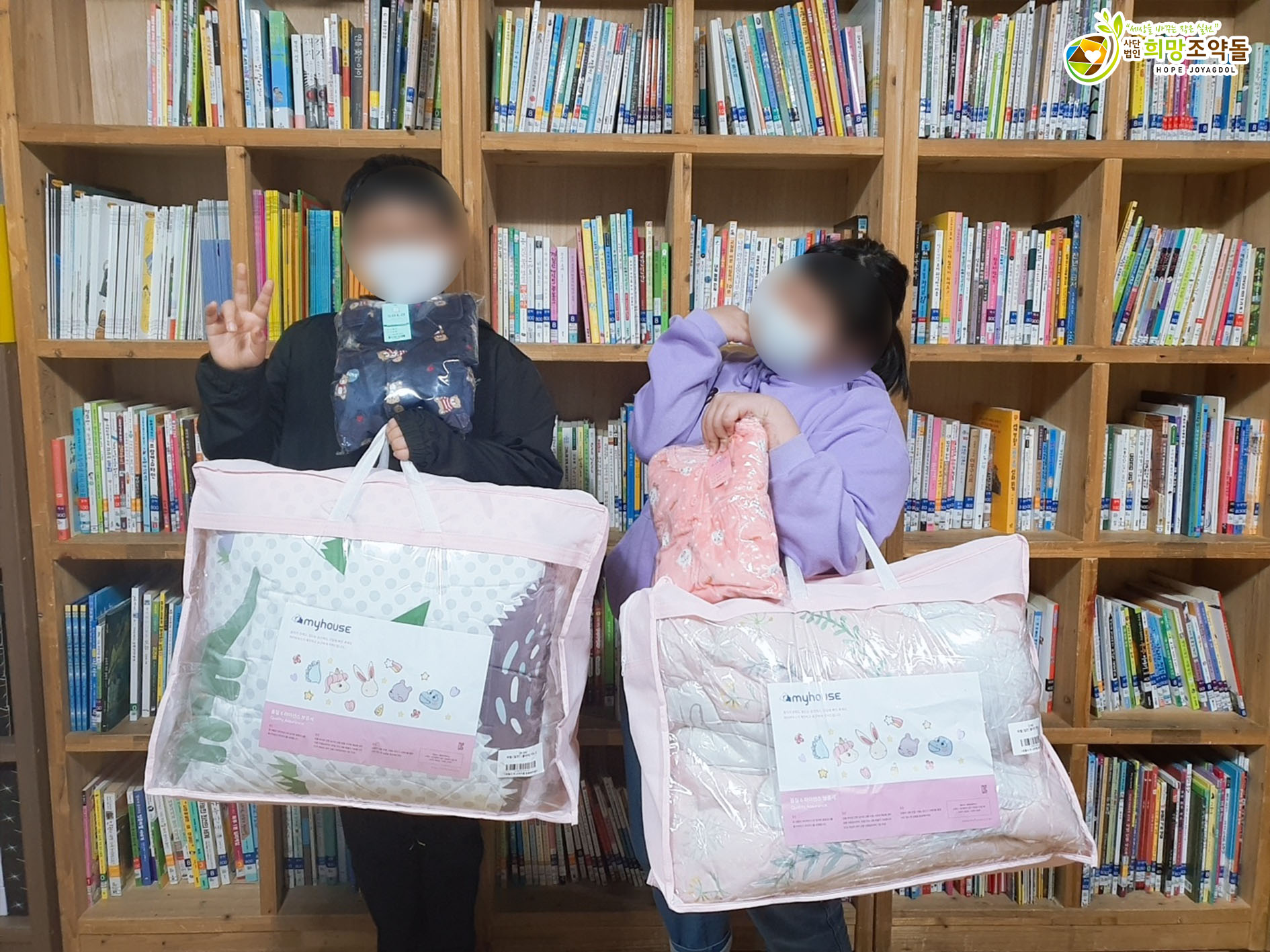 겨울 의류와 두툼한 이불 등으로 구성되어 있으며, 포근한 겨울이 될 수 있도록 지원했습니다.