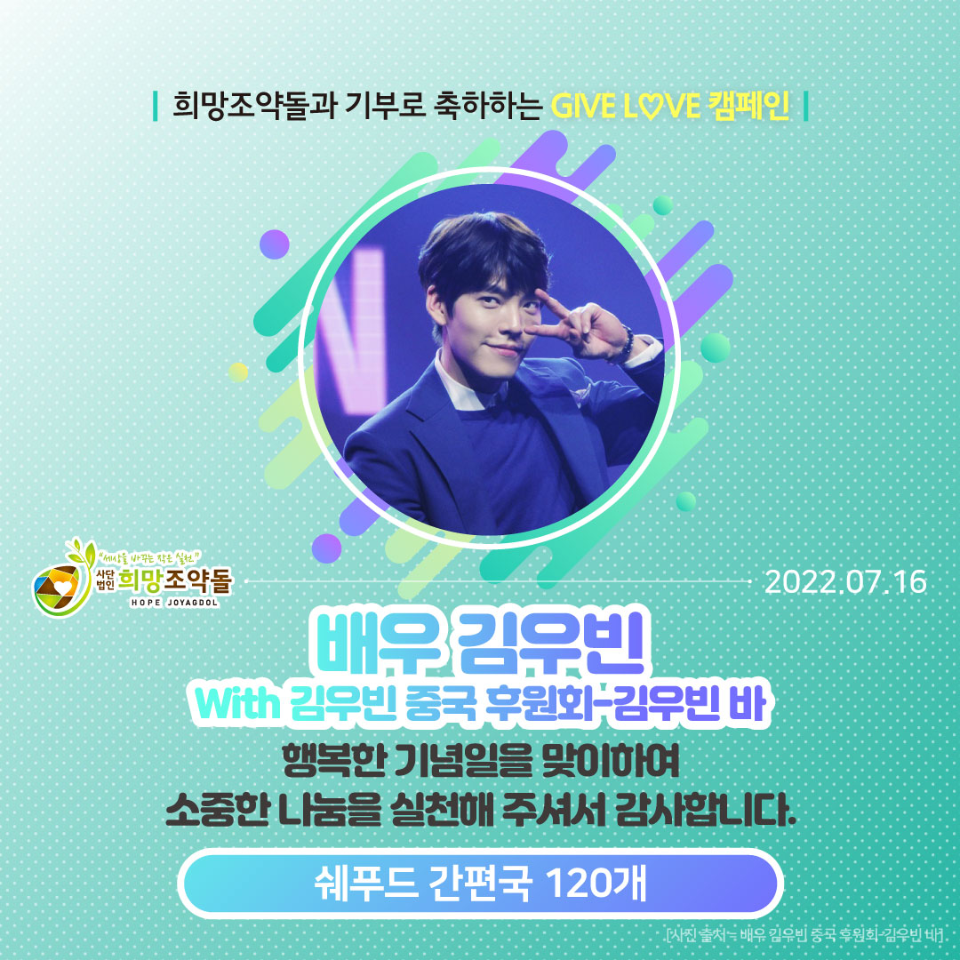 “자선으로 사랑을 전하고 필요한 사람에게 따뜻한 마음을 드리며 김우빈님 생일 축하드립니다!"