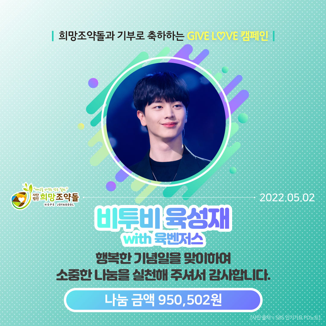 “5월 2일 비투비 육성재님의 생일을 맞이하여, '육벤저스'가 나눔에 동참합니다"