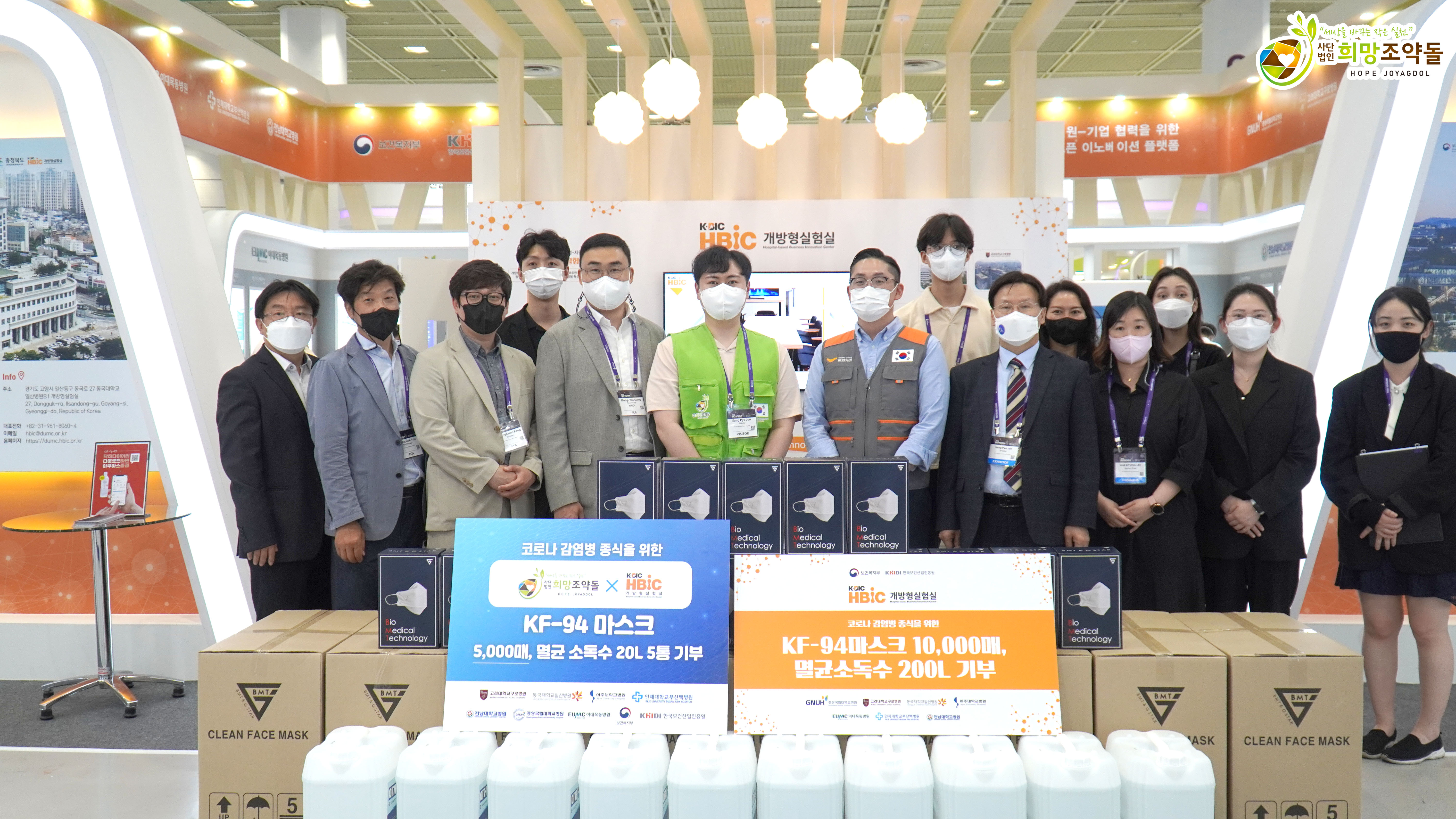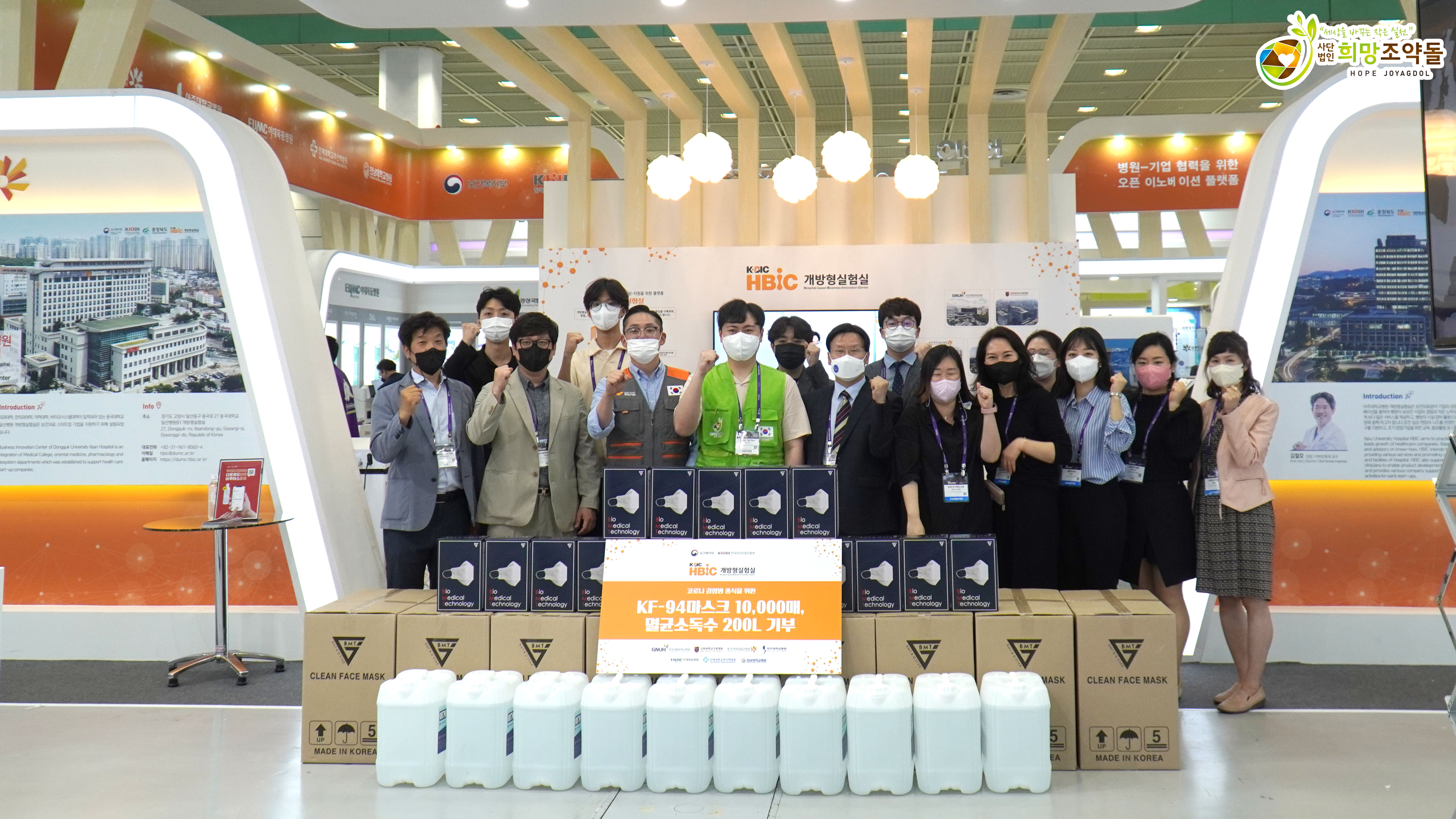 고대구로병원 개방형실험실에서 기부해 주신 KF94 마스크 5,000매와 살균 소독수 20L 5통은
