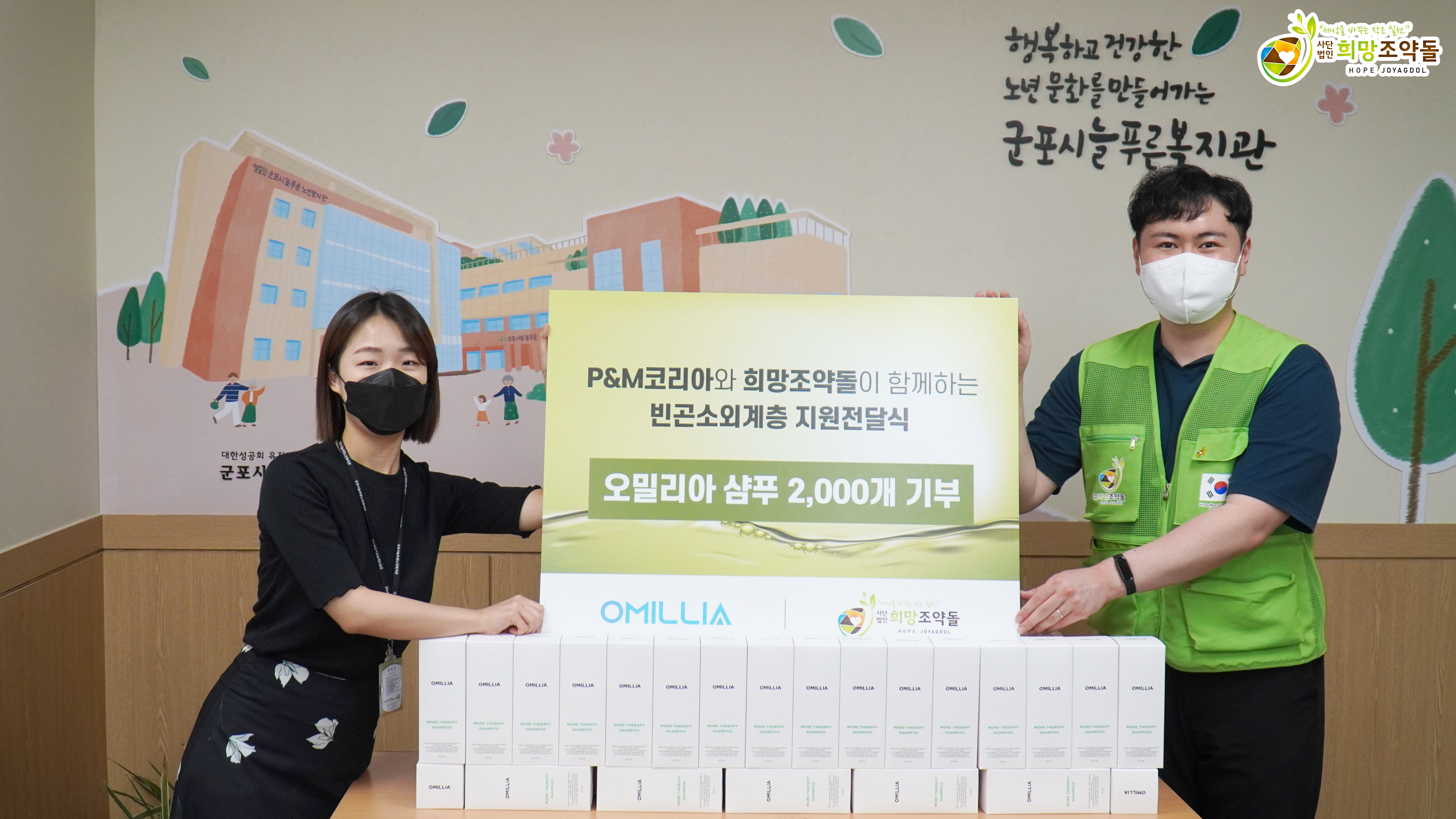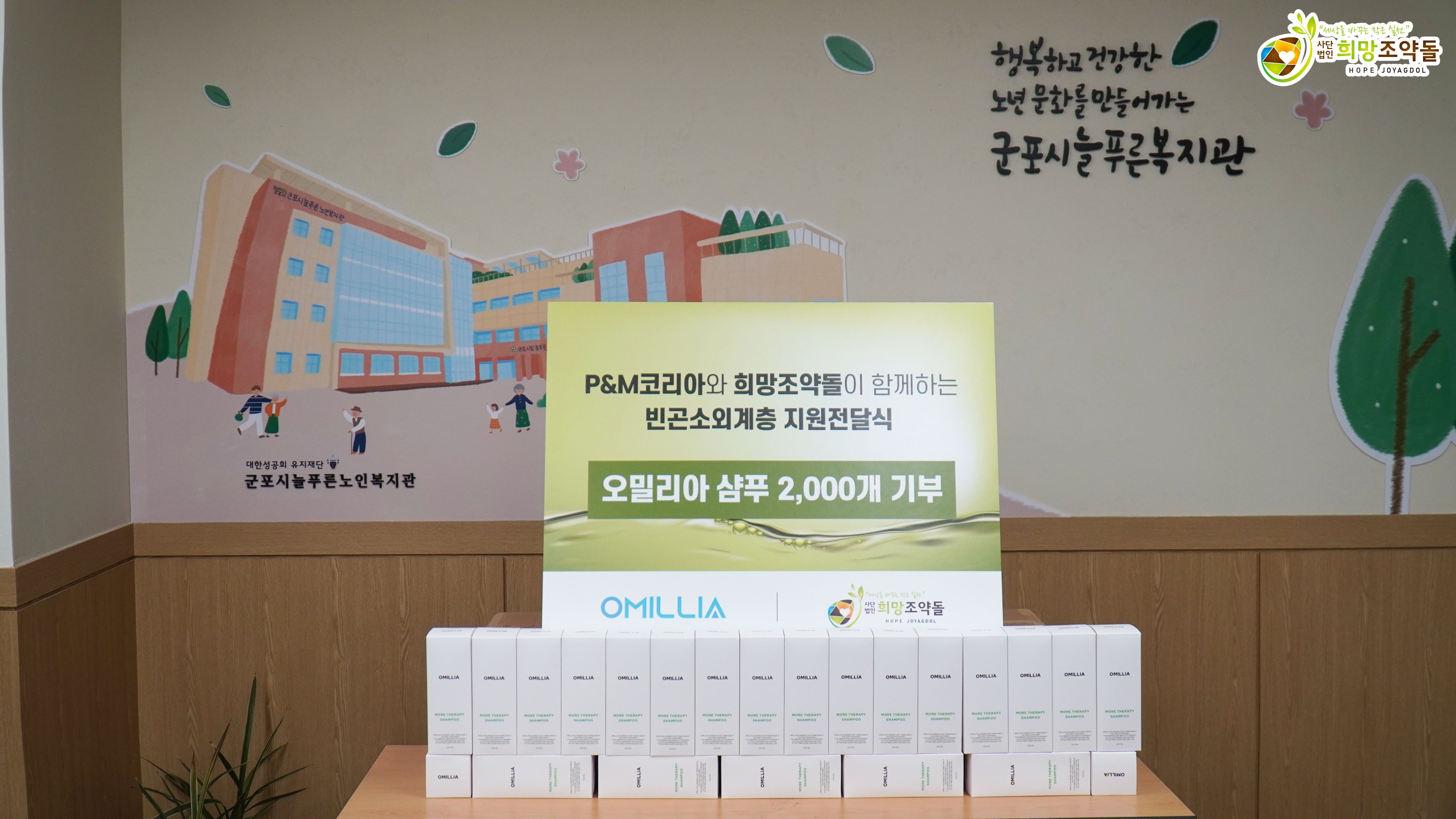 주식회사 P&M코리아에서 두피에 좋은 탈모샴푸 2,000개를 국내기부단체 희망조약돌에 기부해주셨습니다.