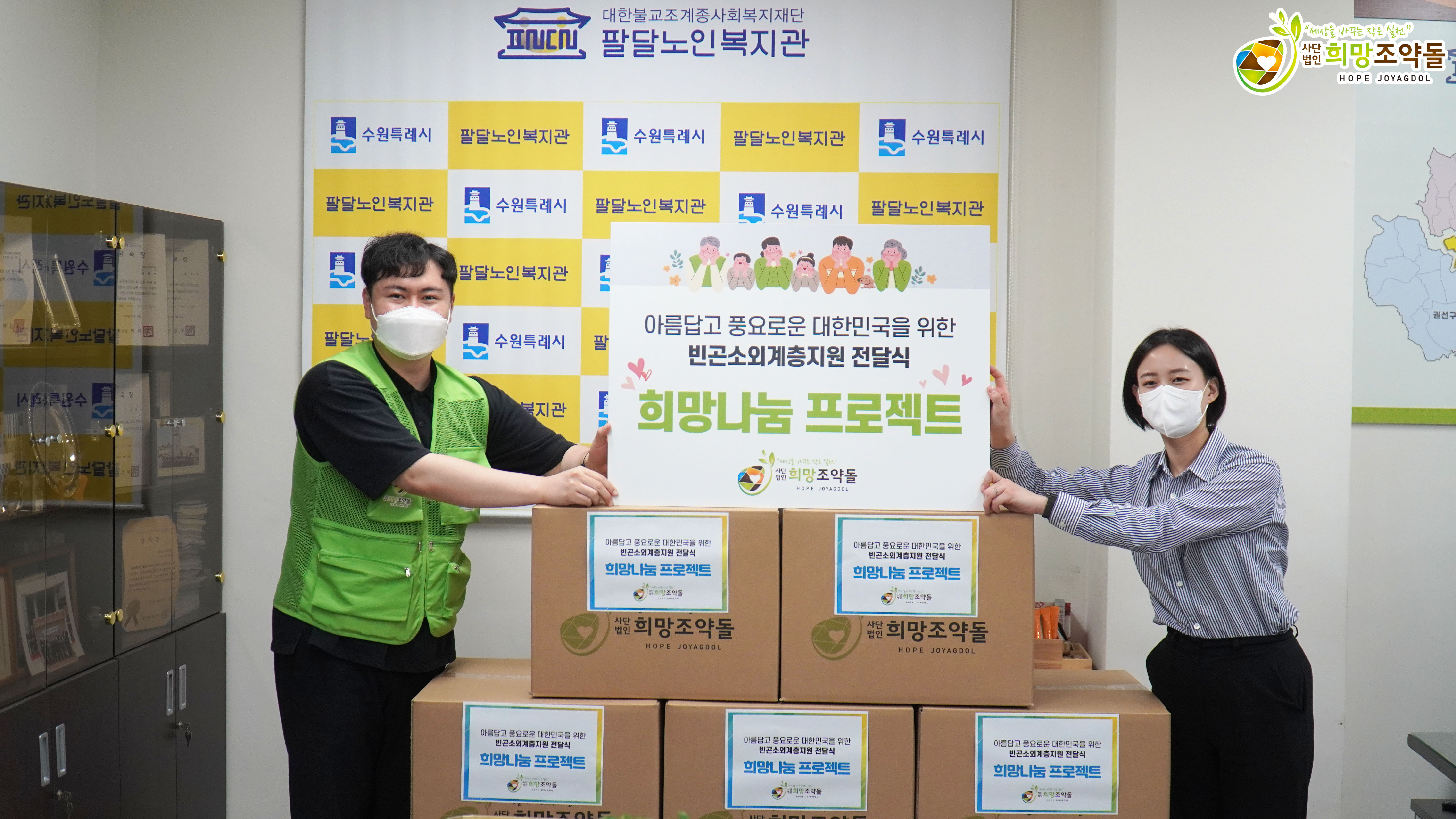 KF94 황사마스크 5,000매는 국내구호전문 희망조약돌에서 지역 기관에 전달하였으며,