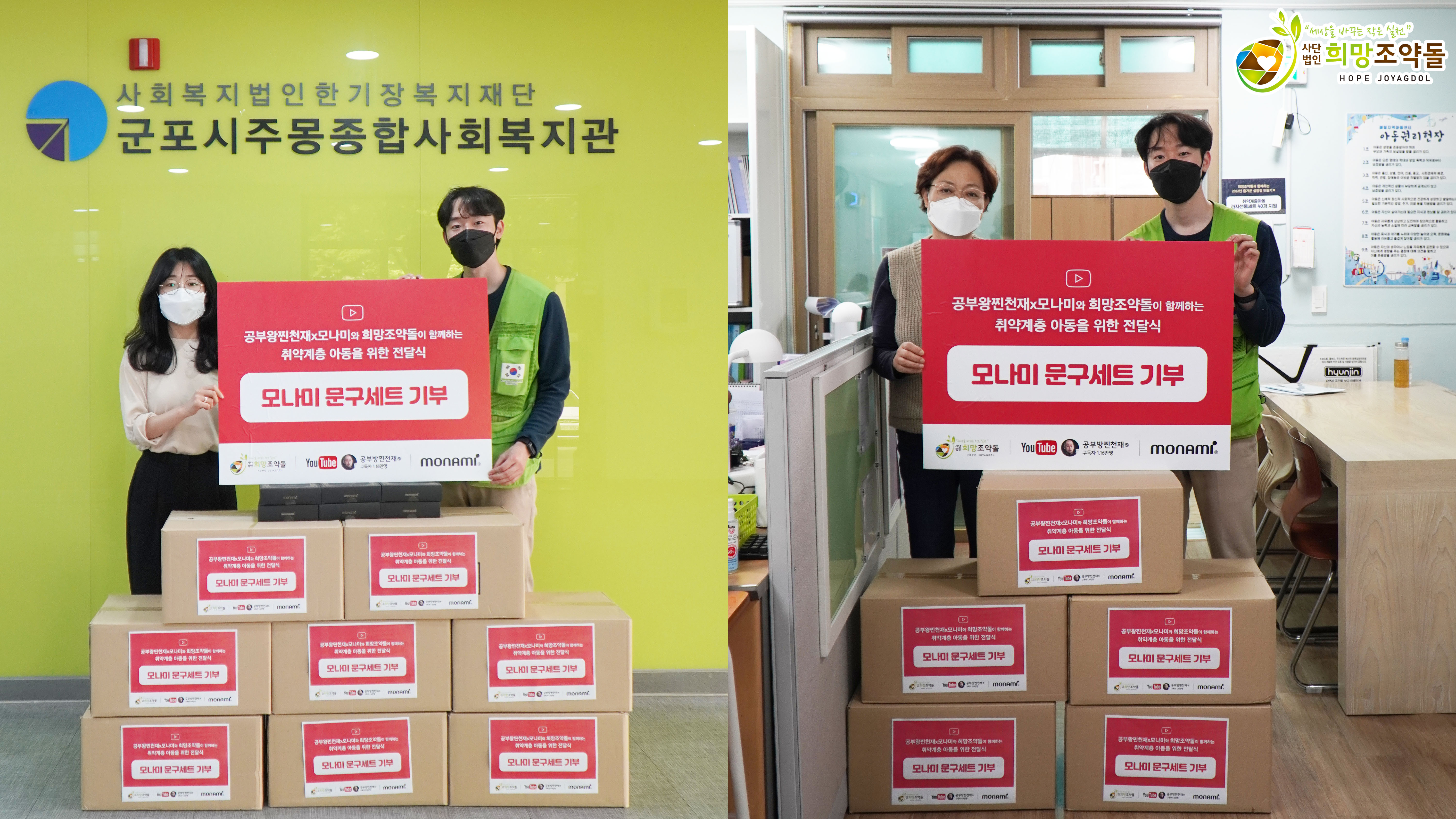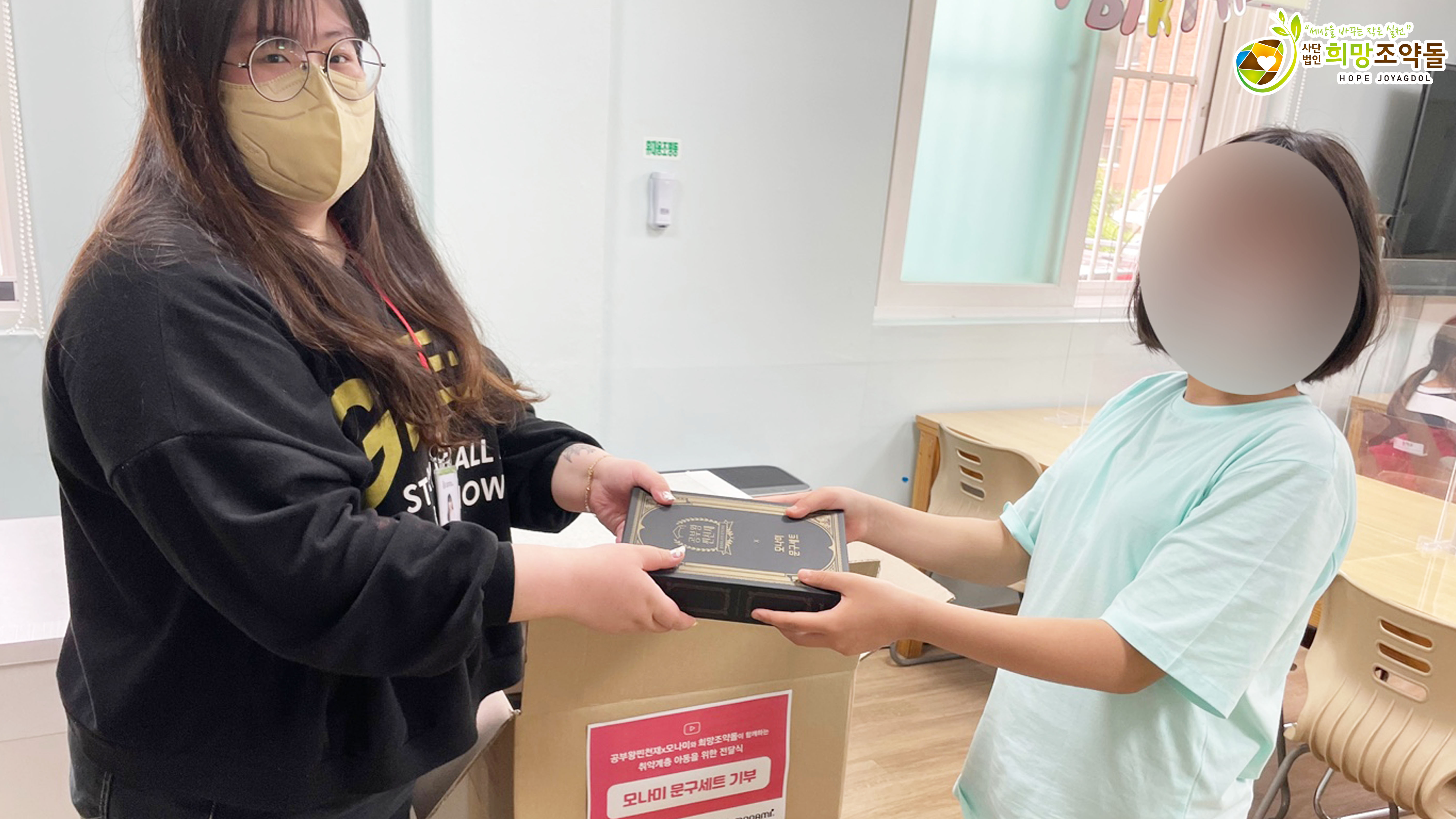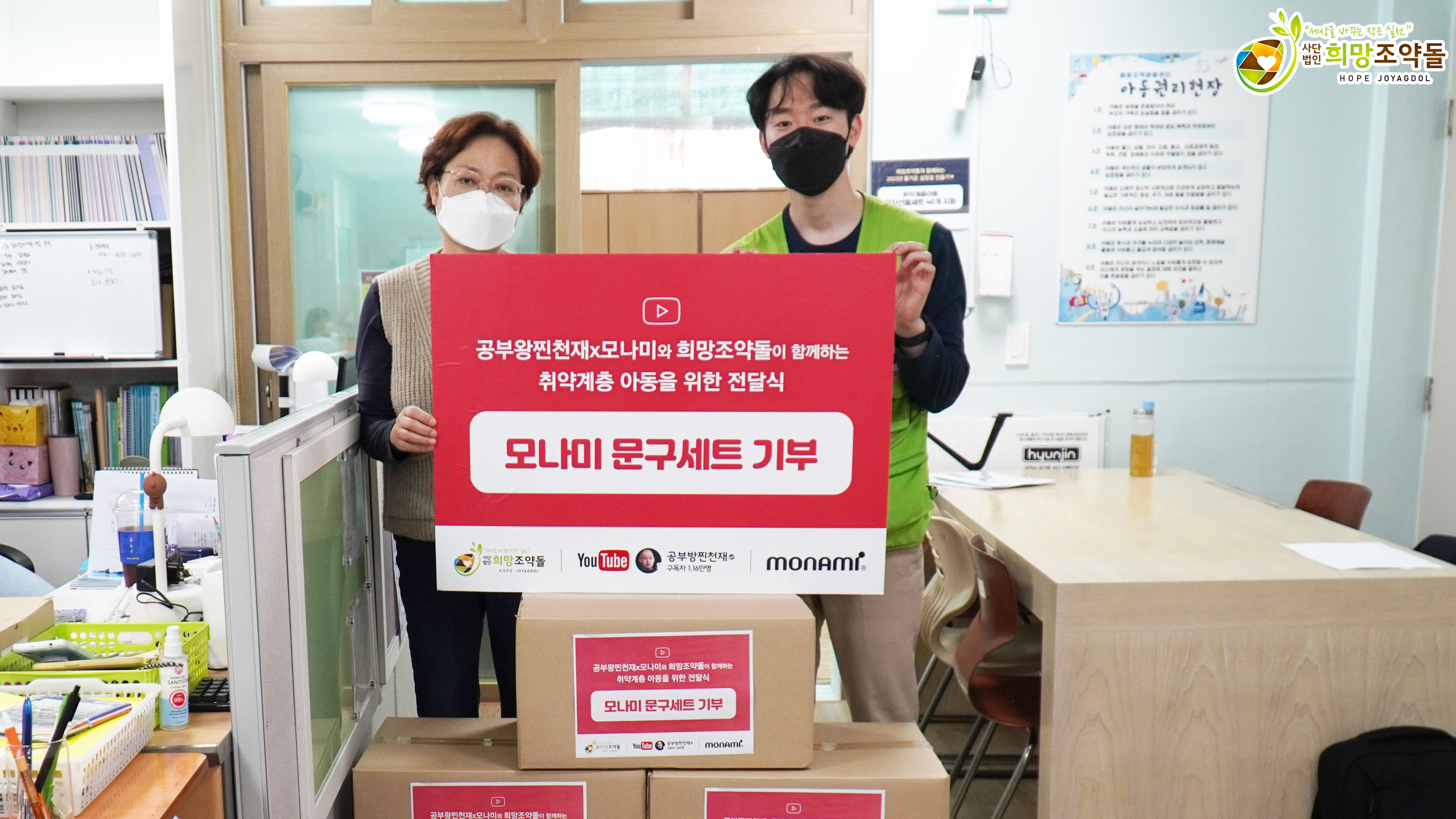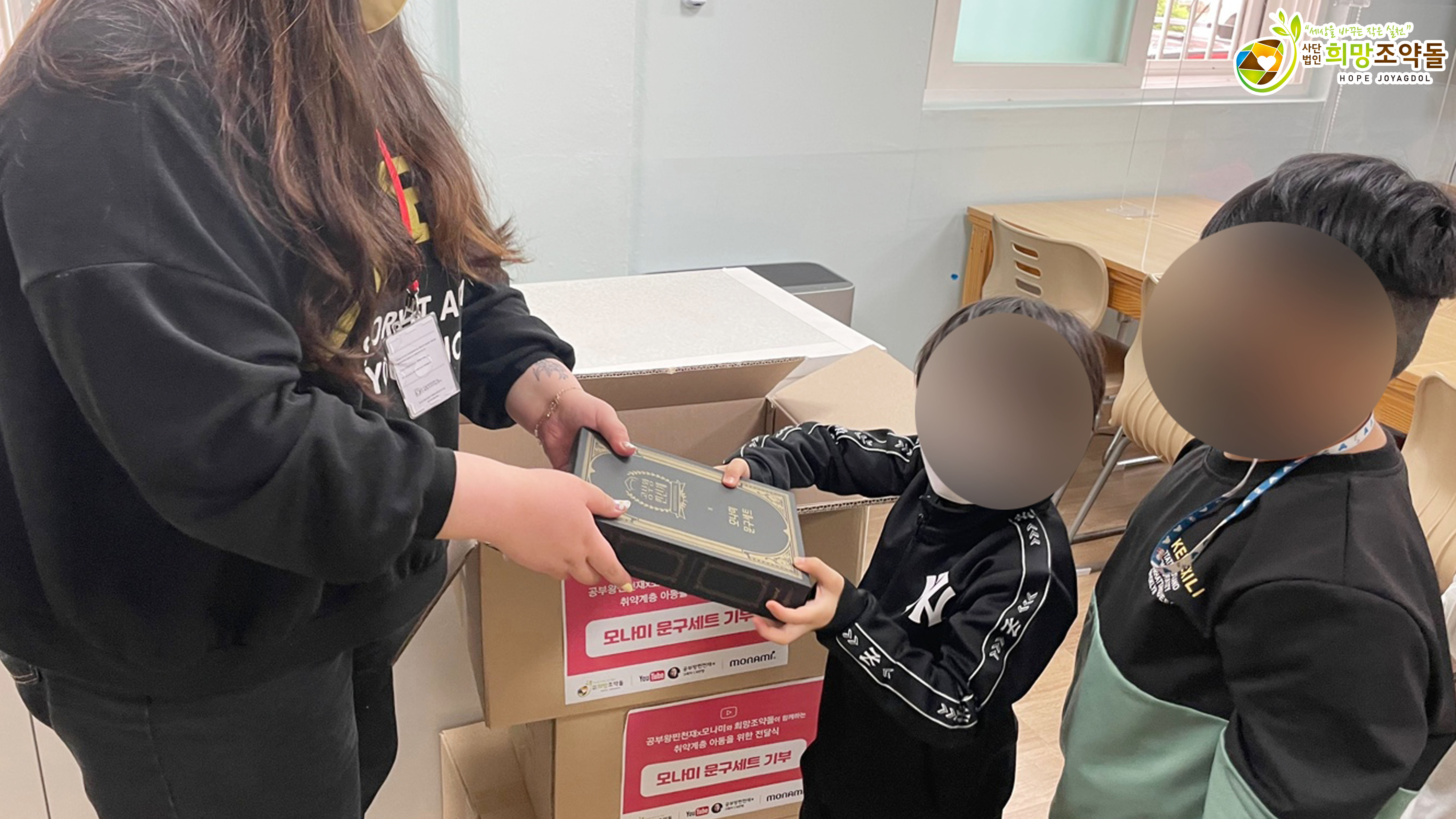모나미X공부왕찐천재에서 후원해주신 문구세트의 경우 학습결손을 겪고 있는 국내 소외계층 아동들에게 전달되었으며,