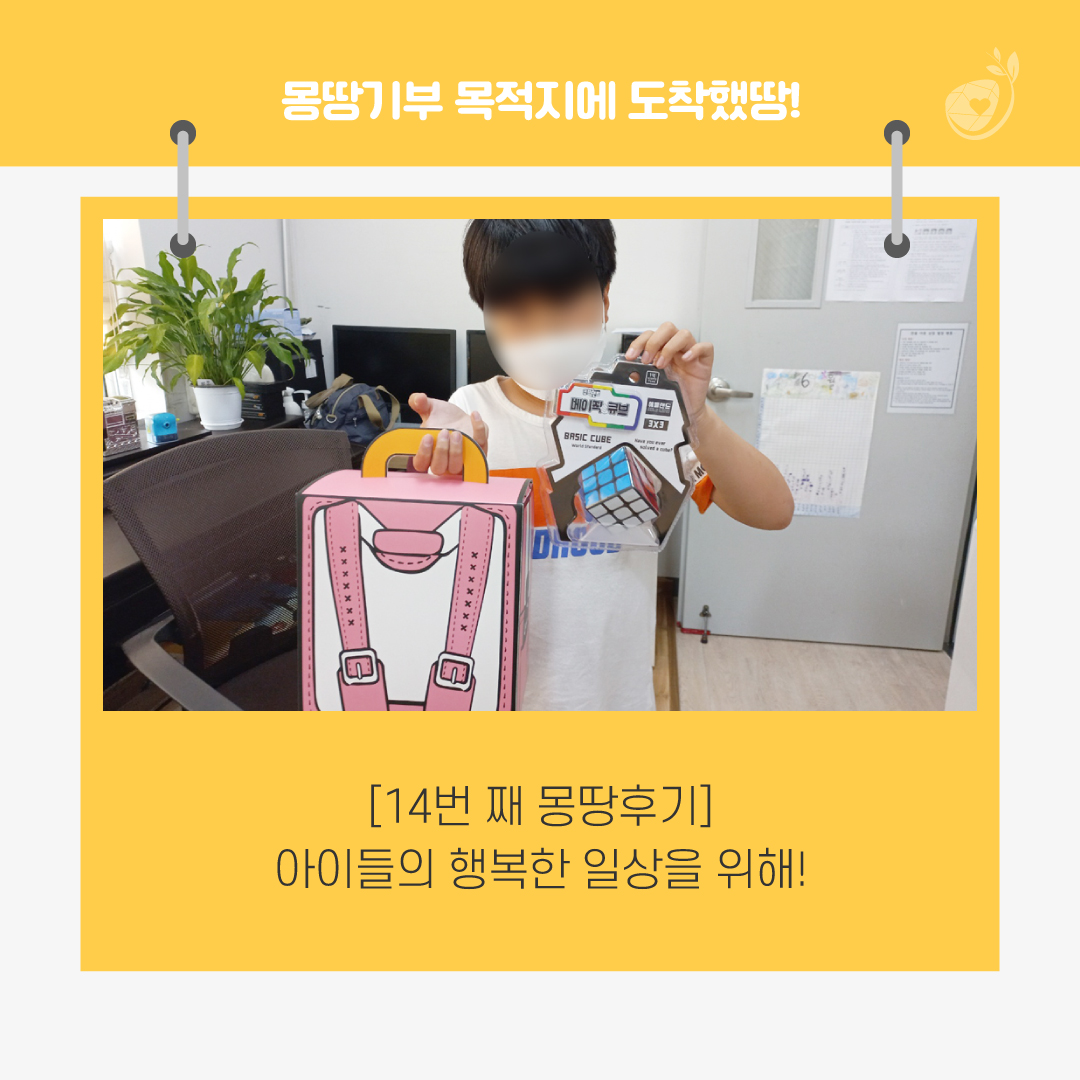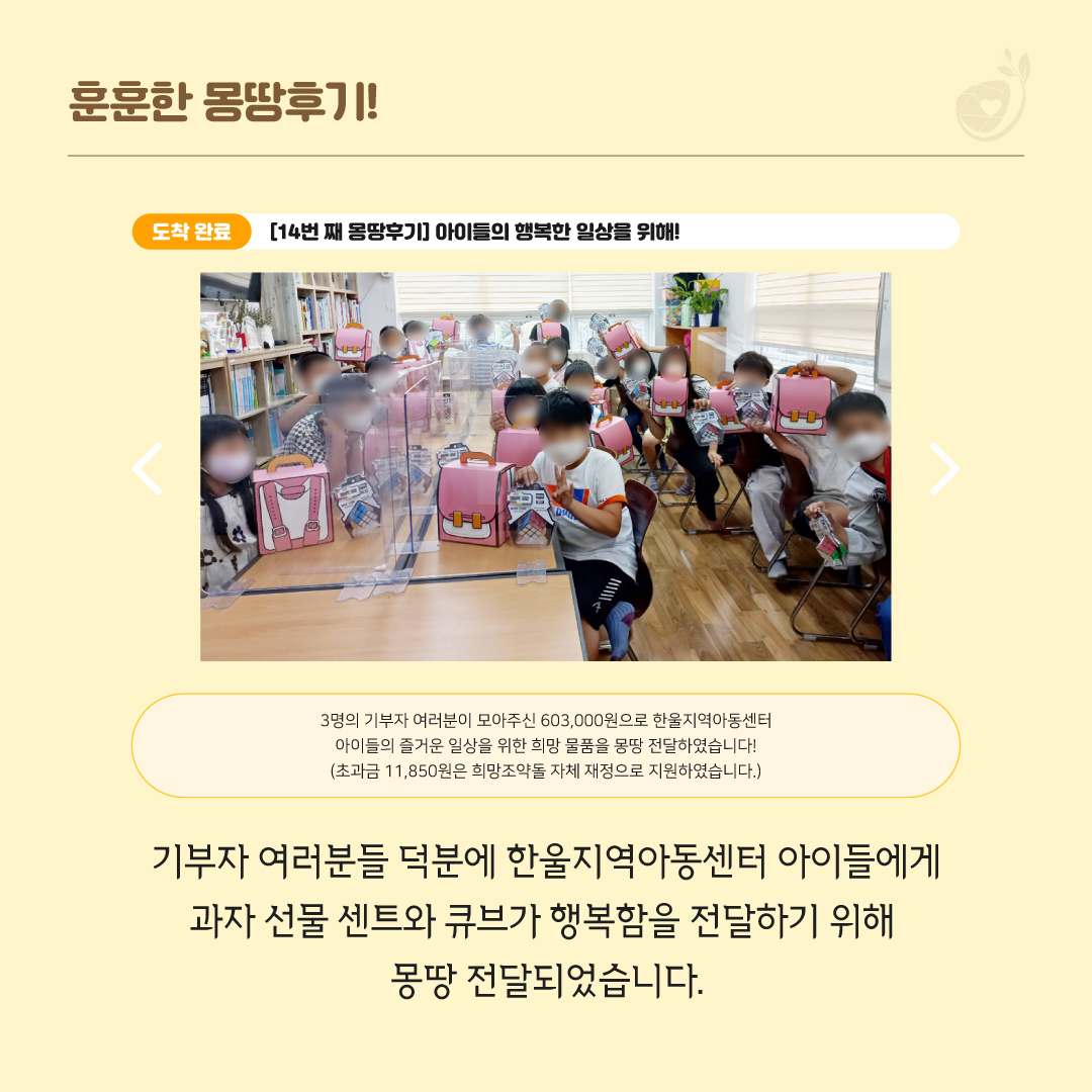 오늘은 몽땅기부와 함께 해주신 기부자분들의 소중한 마음이 전달된