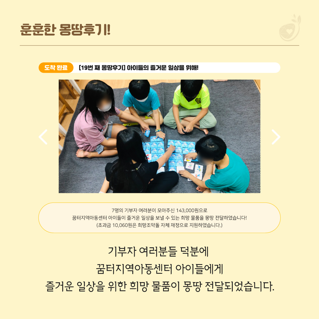 이번 기부는 꿈터지역아동센터 아이들이
