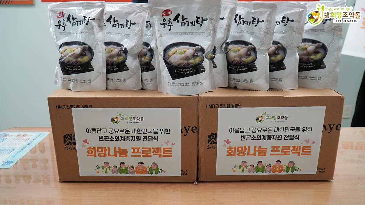 독거노인 어르신께 삼계탕을 제공해드리고 자 350개의 레토르트 삼계탕을 구매하였으며 지역노인복지관에 전달해 드렸습니다.
