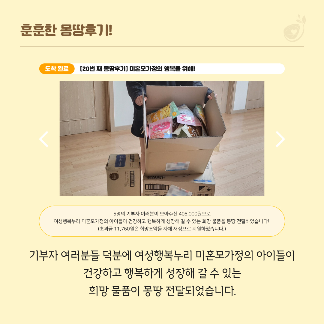 오늘은 몽땅기부와 함께 해주신 기부자분들의 소중한 마음이 전달된