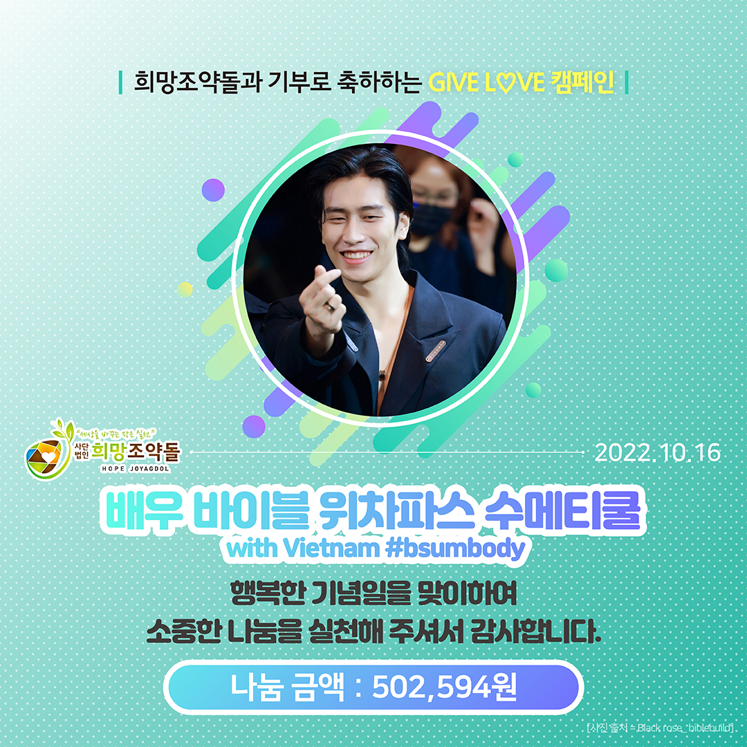 실천해주신 팬기부 소식은 희망조약돌 SNS를 통해서도