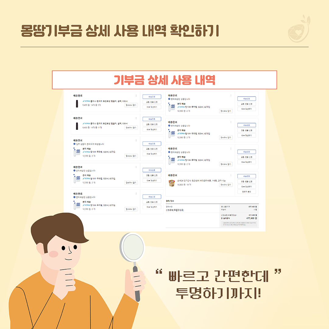 그 해답은 100% 투명한 몽땅기부!