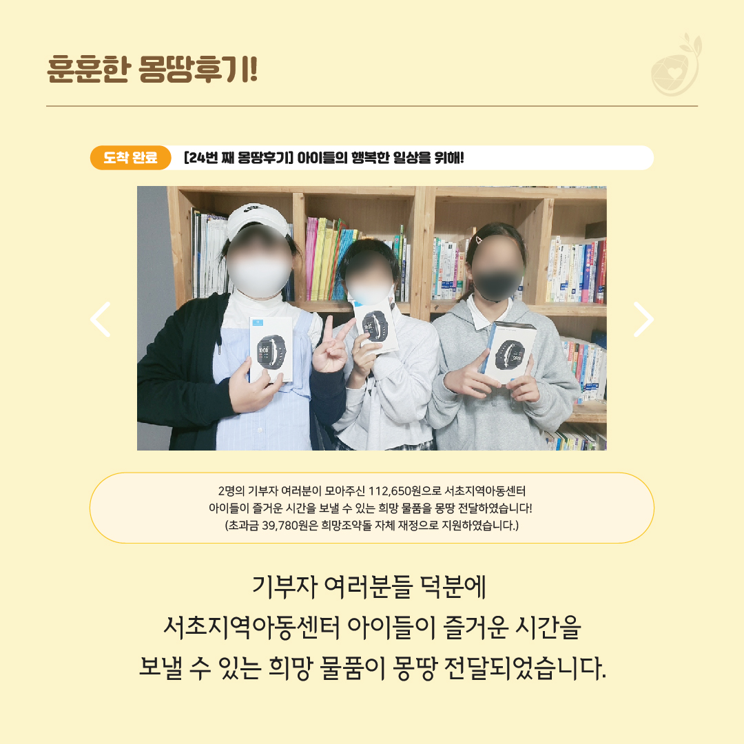 2명의 기부자 여러분이 모아주신 112,650원으로