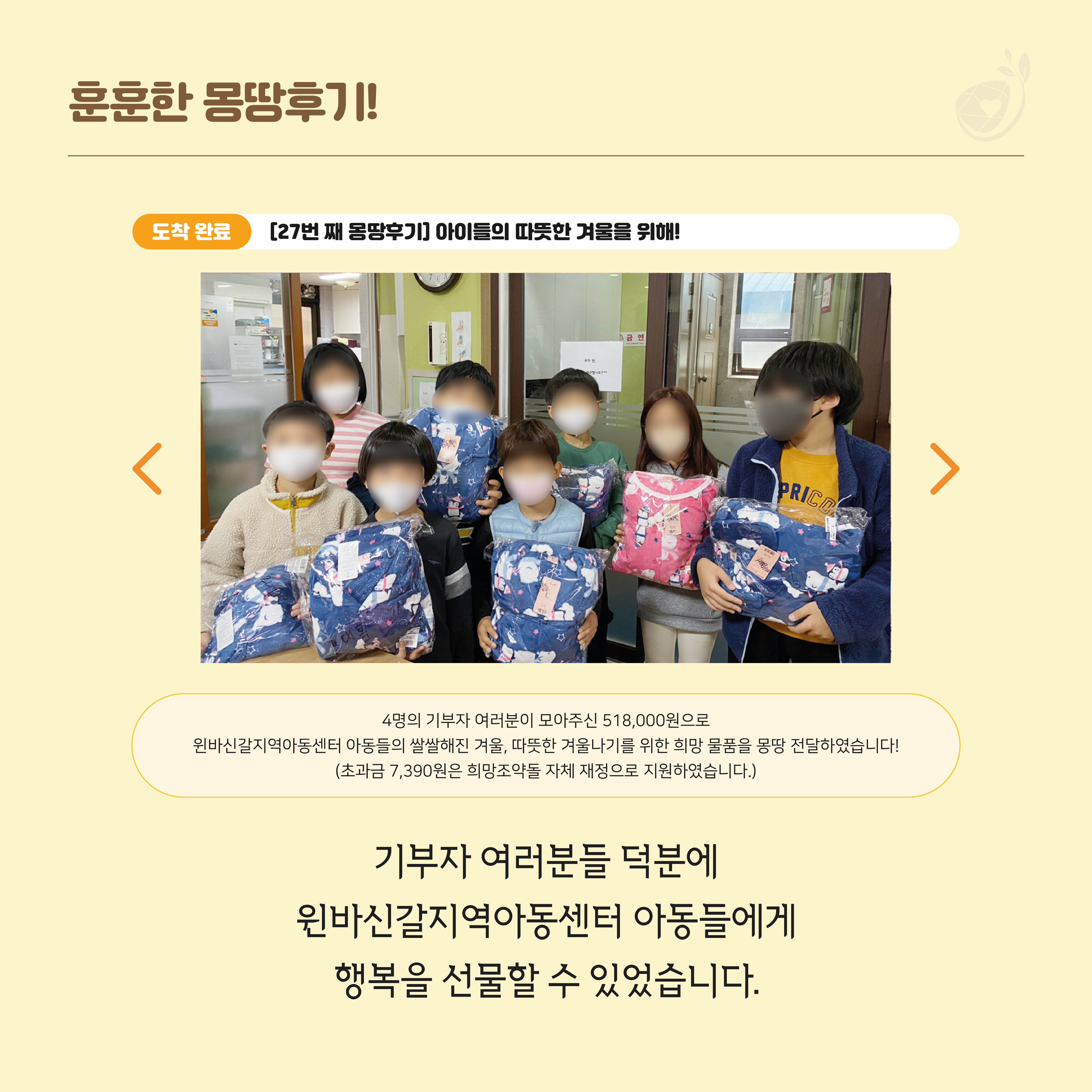 아이들에게 포근함을 선물할 수 있었습니다.