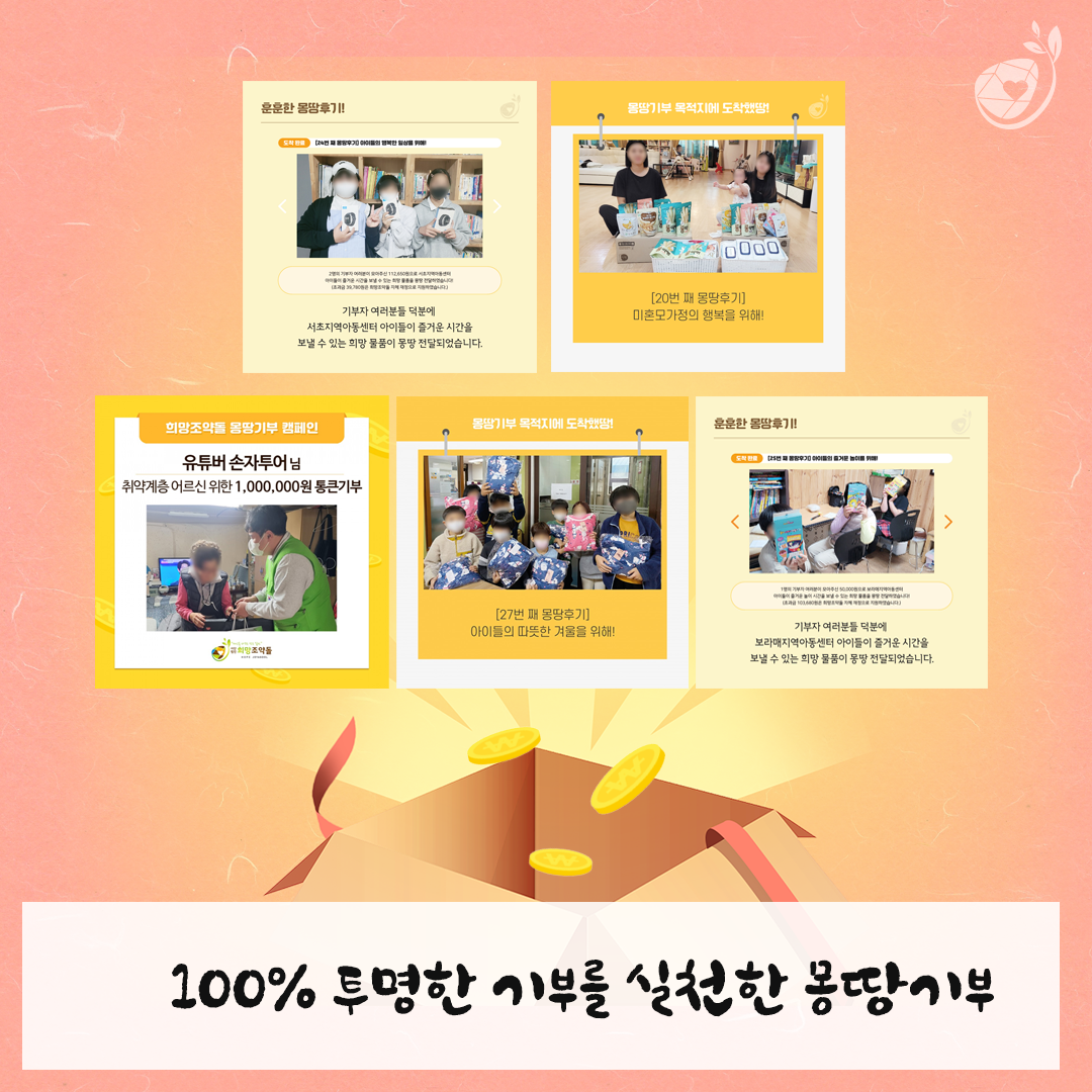 100% 투명한 기부를 실천한 몽땅기부 등