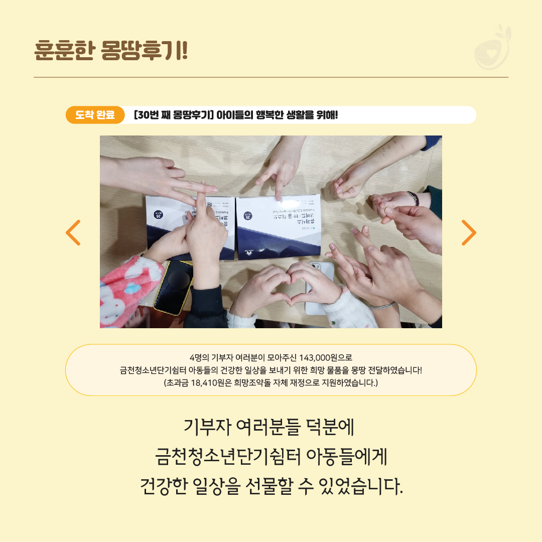 건강한 일상을 보낼 수 있도록 몽땅기부를 진행했으며,