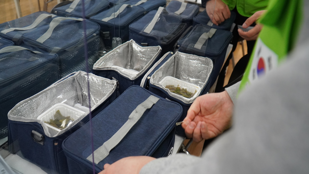 직접 도시락의 밑반찬을 포장하는 등