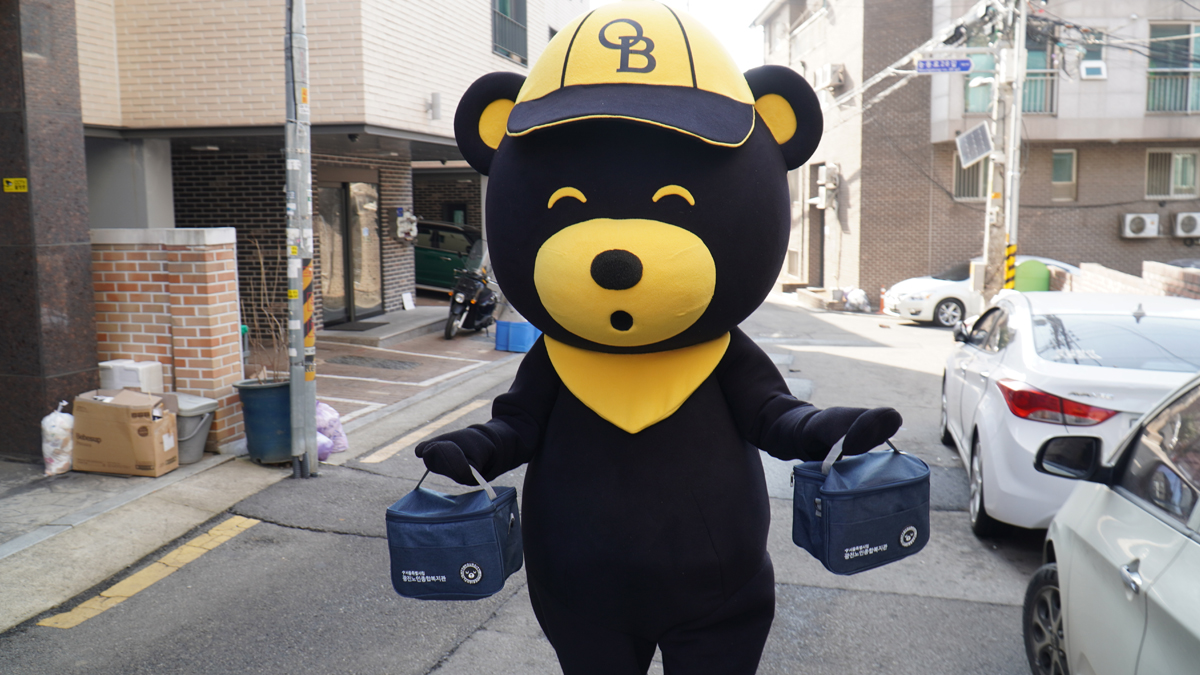오비맥주의 마스코트 랄라베어 함께