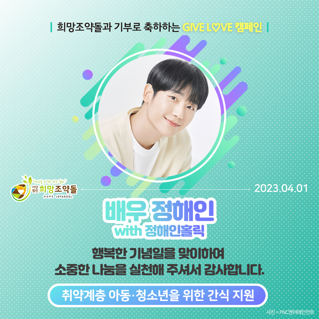 팬카페 '정해인홀릭'과 함께 한 팬기부는