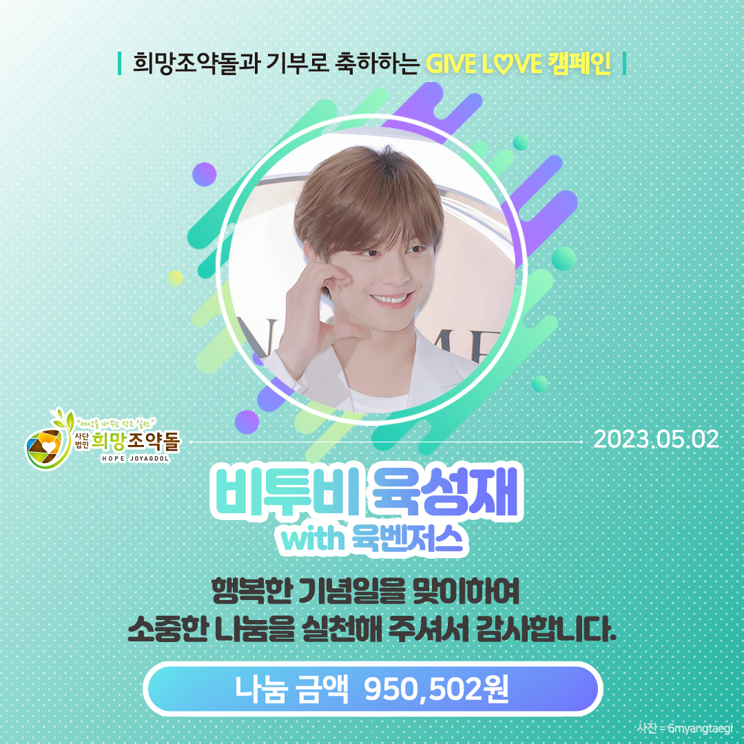 "가수 육성재의 29번째 생일을 맞아 성재와 육벤저스가 뜻깊은 나눔에 함께 합니다"