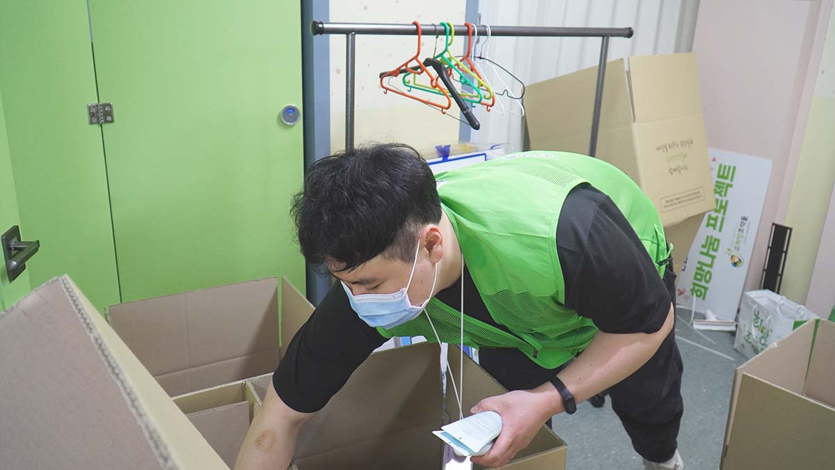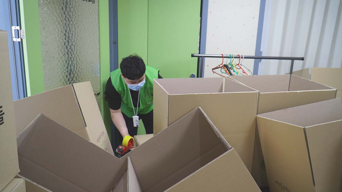 열심히 물건을 넣고, 박스에 테이핑을 하고