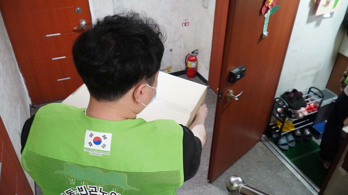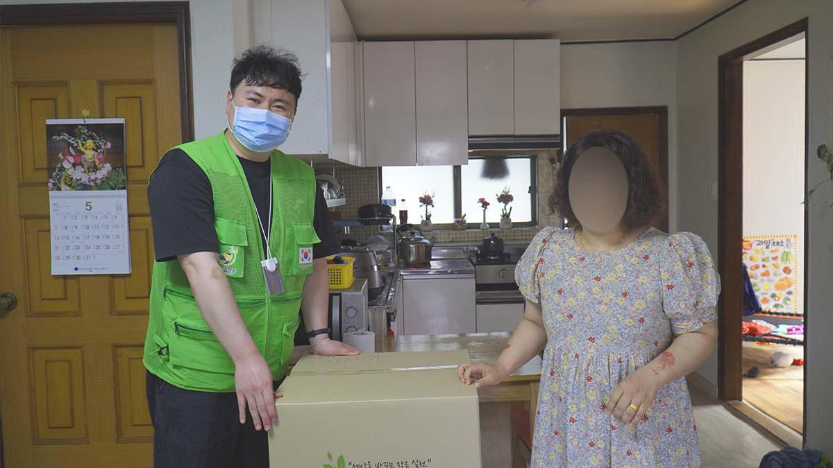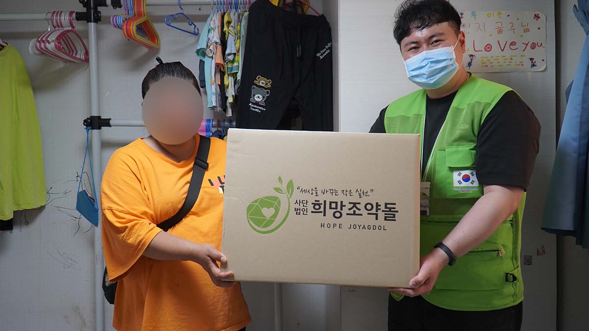 첫 번째 방문 가정에 희망박스를 전달해 드렸어요!