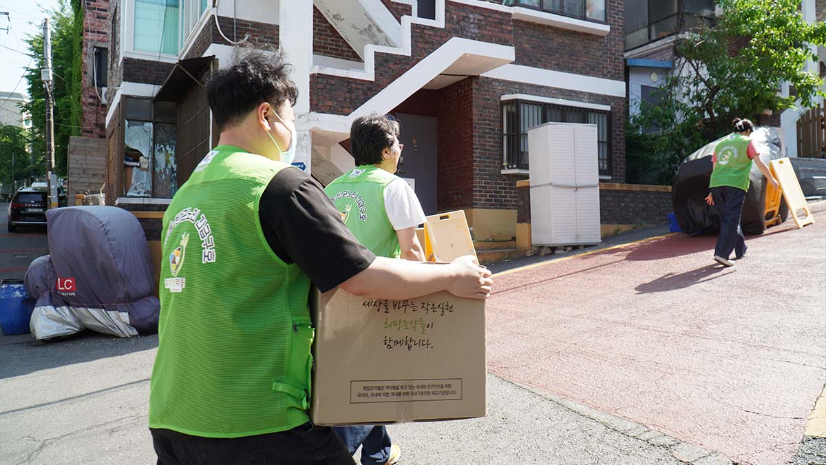 희망박스를 전달드리며 잠깐의 담소를 나눈 후에