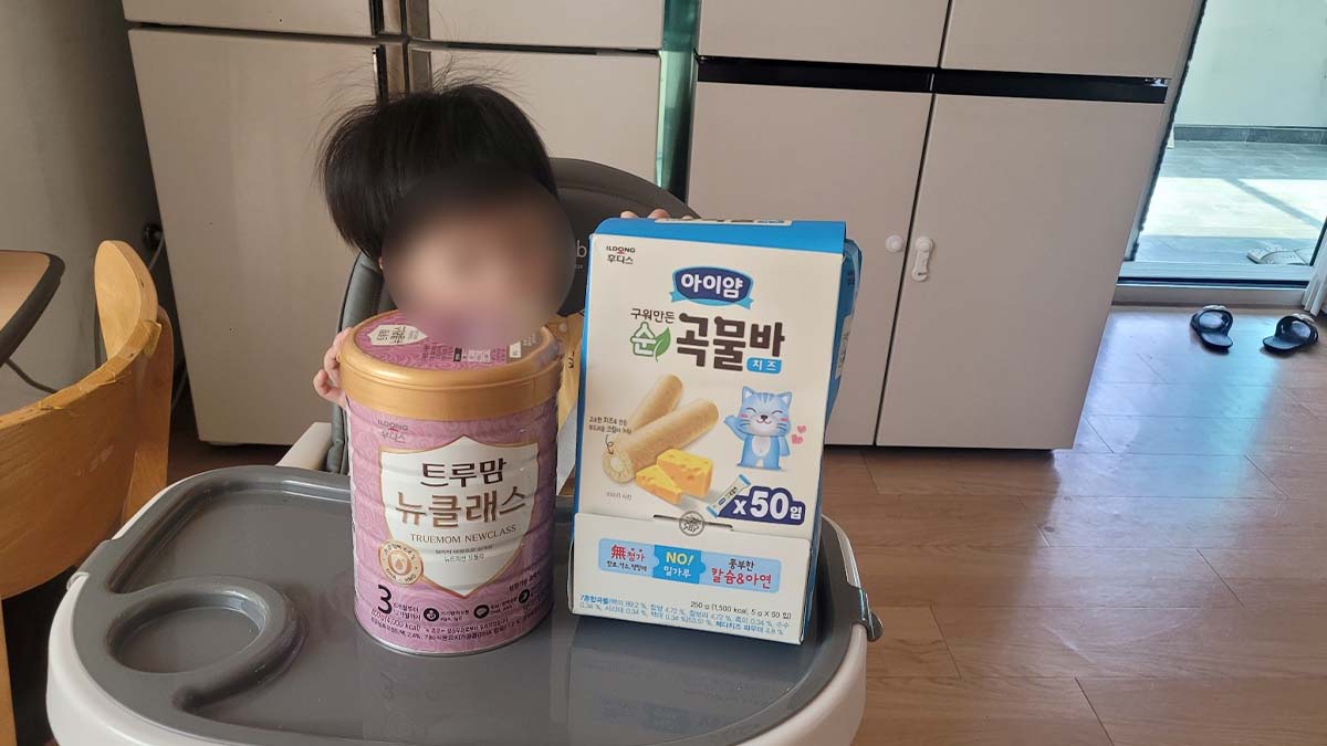 중저가라인의 분유와 기저귀를 한 아이에게