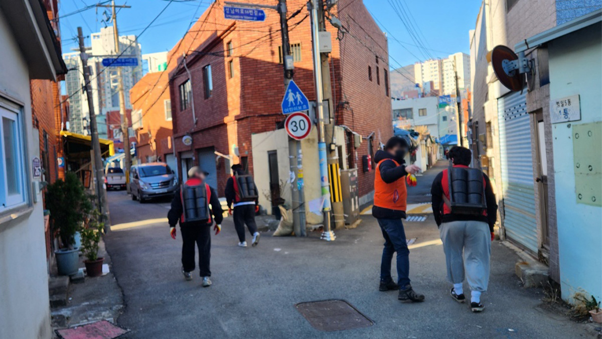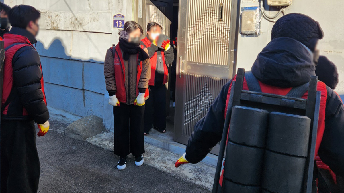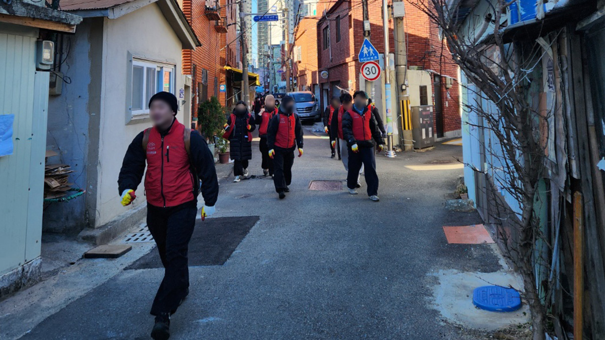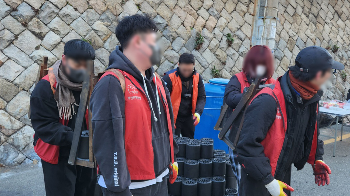 봉사자분들에게 최대한 연탄가루가 묻지 않게