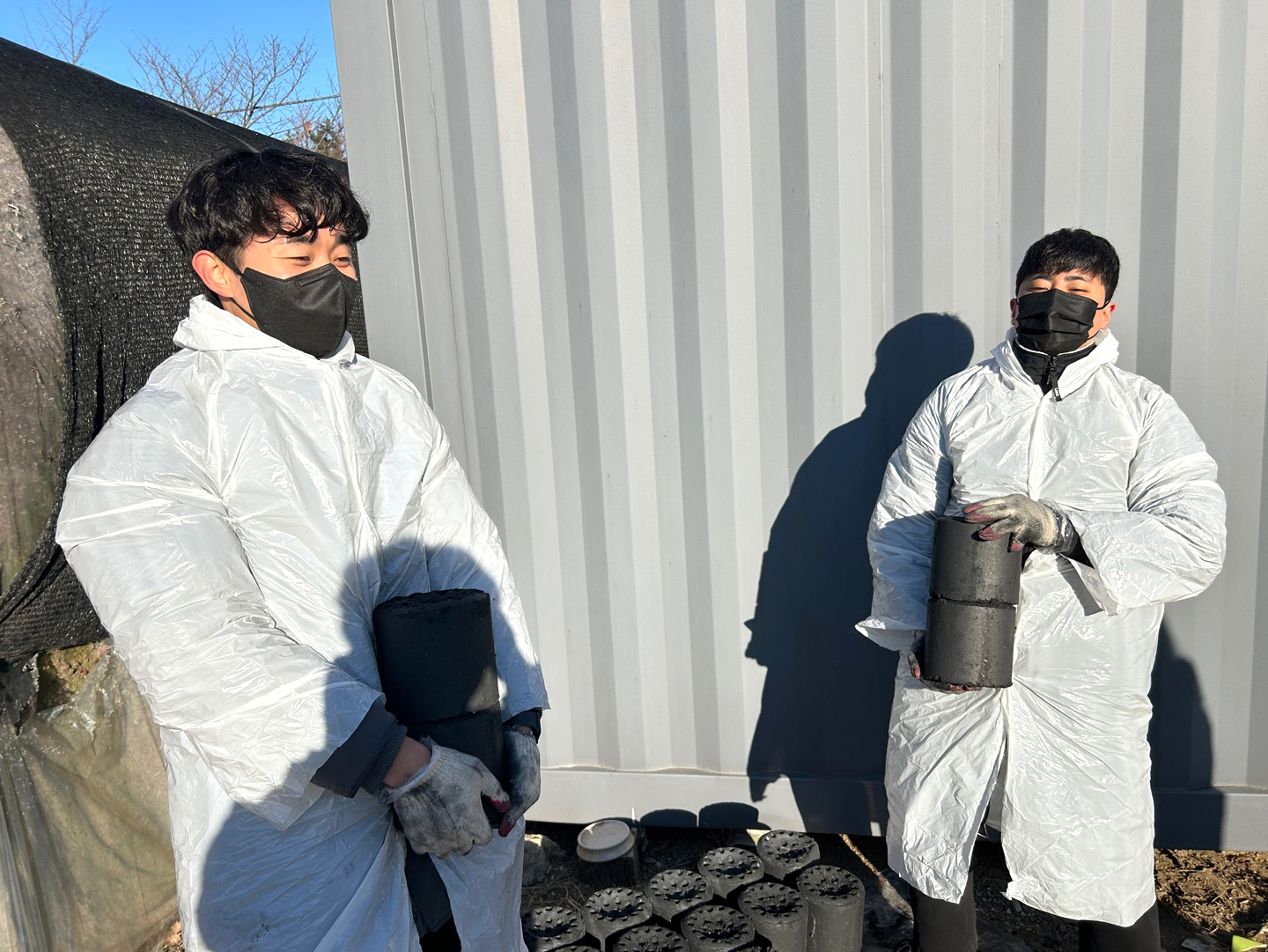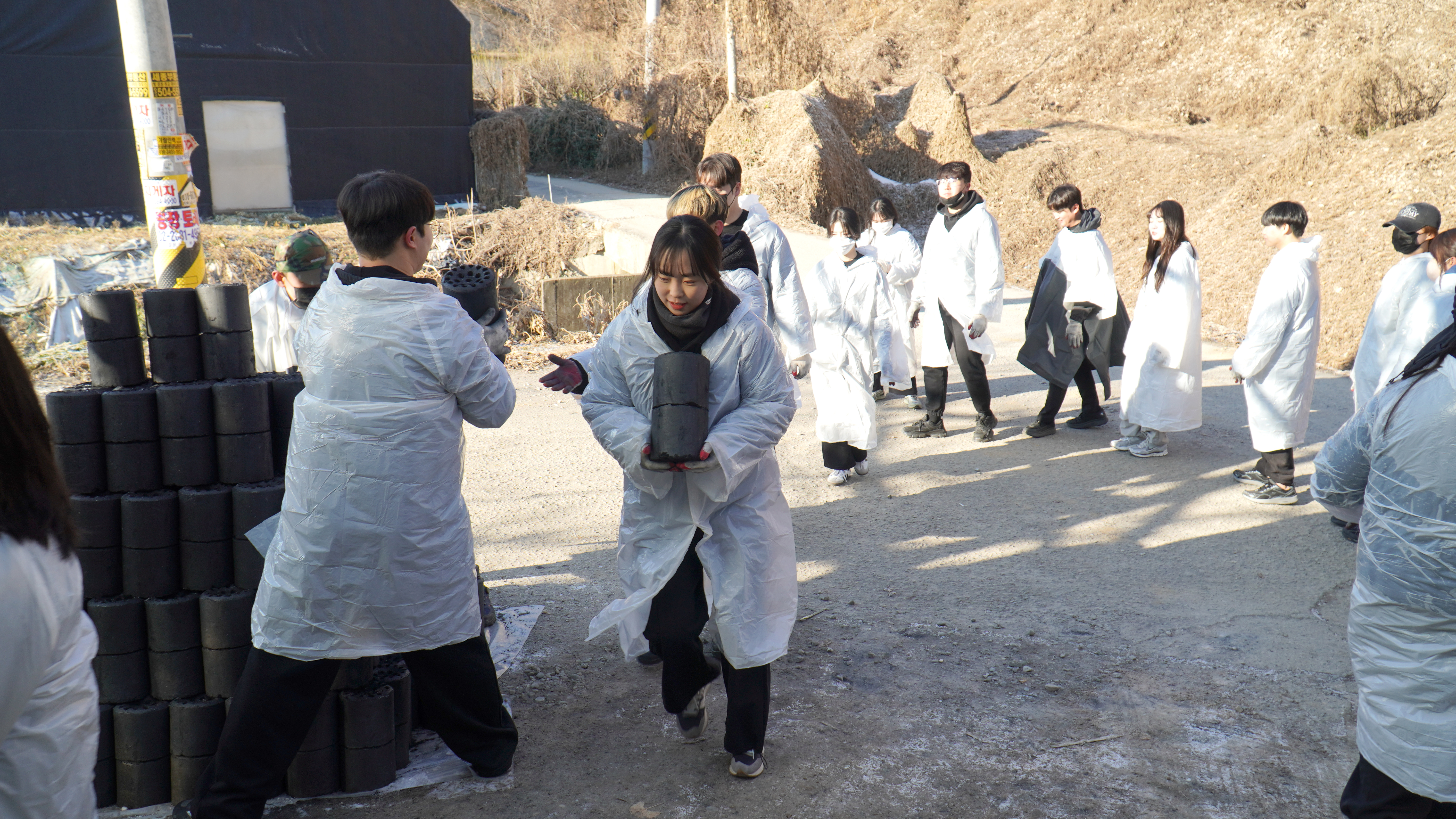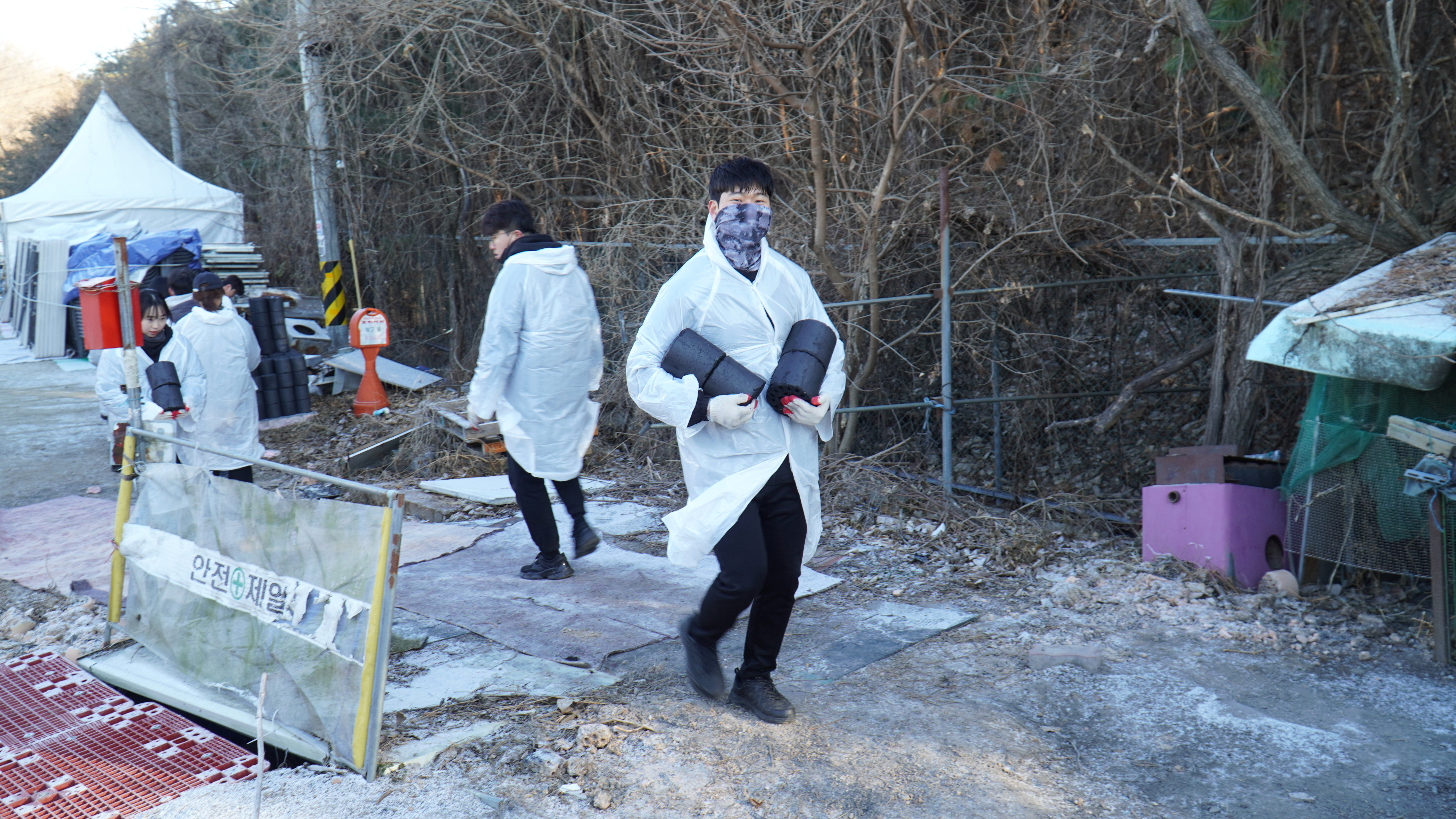 연탄이 묻지 않도록 비닐 옷까지 준비했습니다!