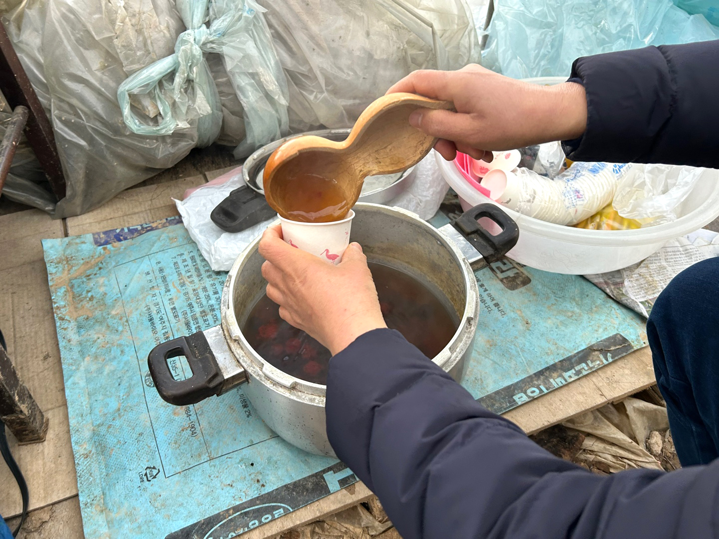 그리고! 어르신께서 정말 추운데 연탄을 직접 전달까지 해주어 고맙다며 뜨끈한 대추차를 내어주셨습니다.
