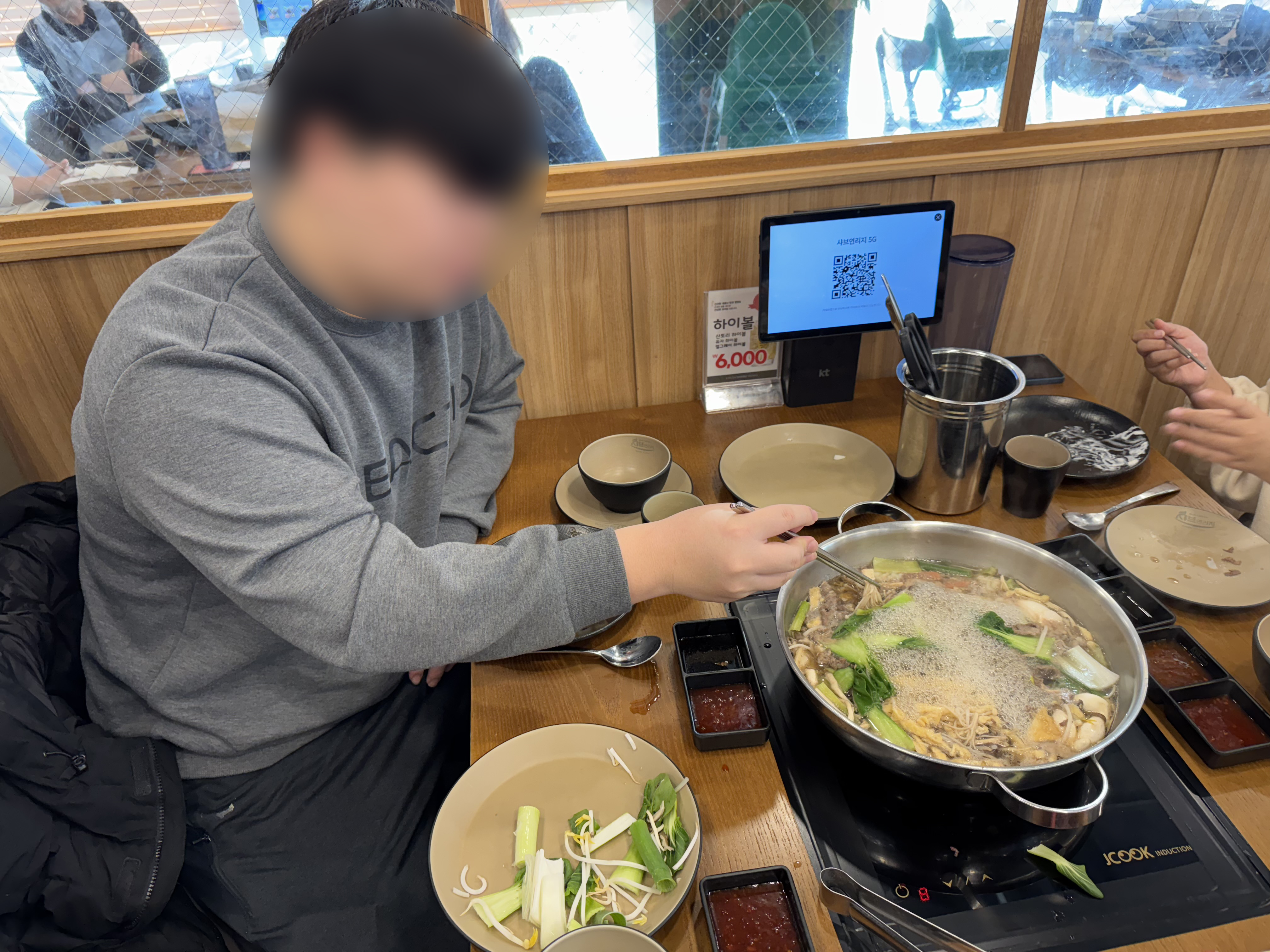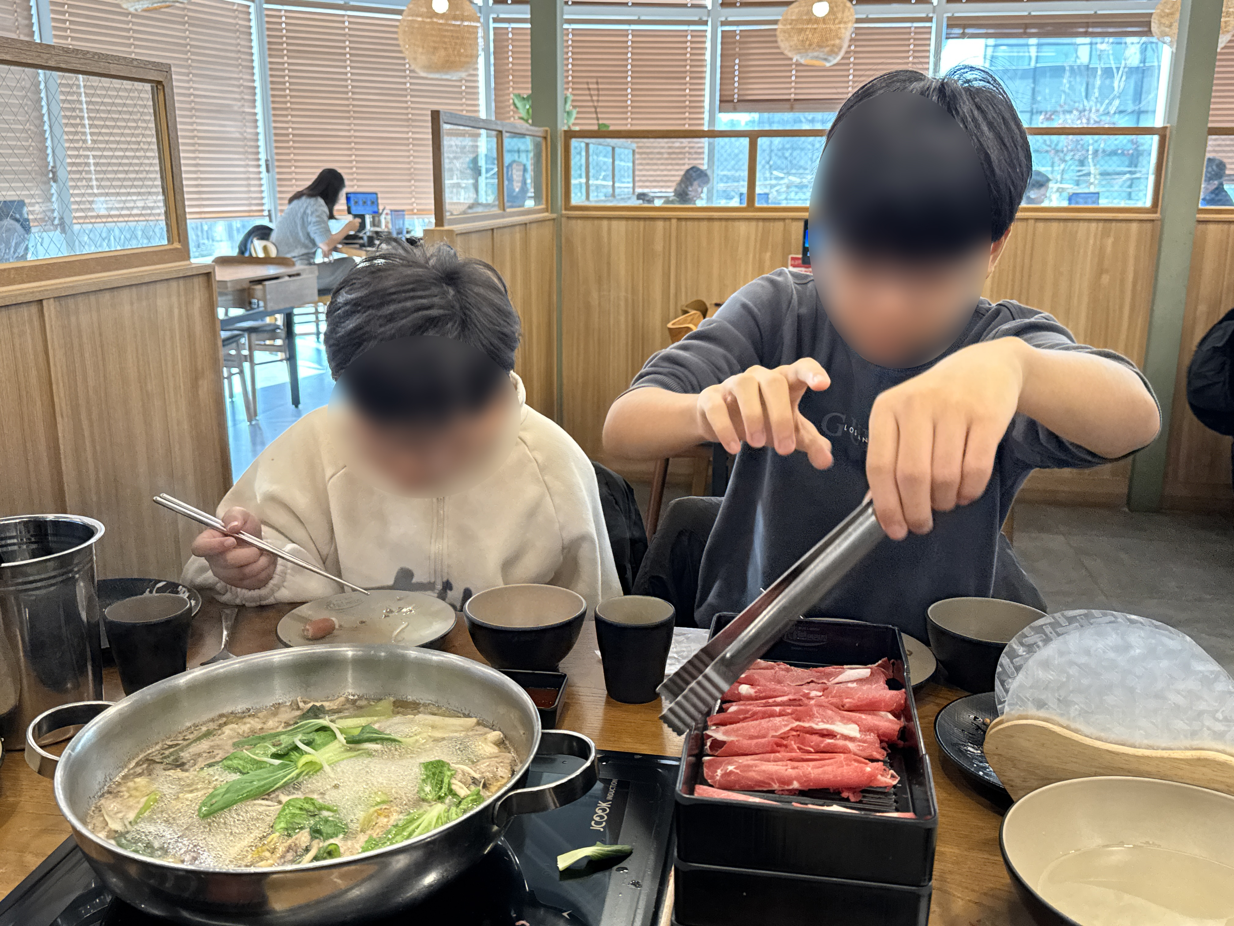 보글보글 끓기 시작하는 샤브샤브 냄비를 보며
