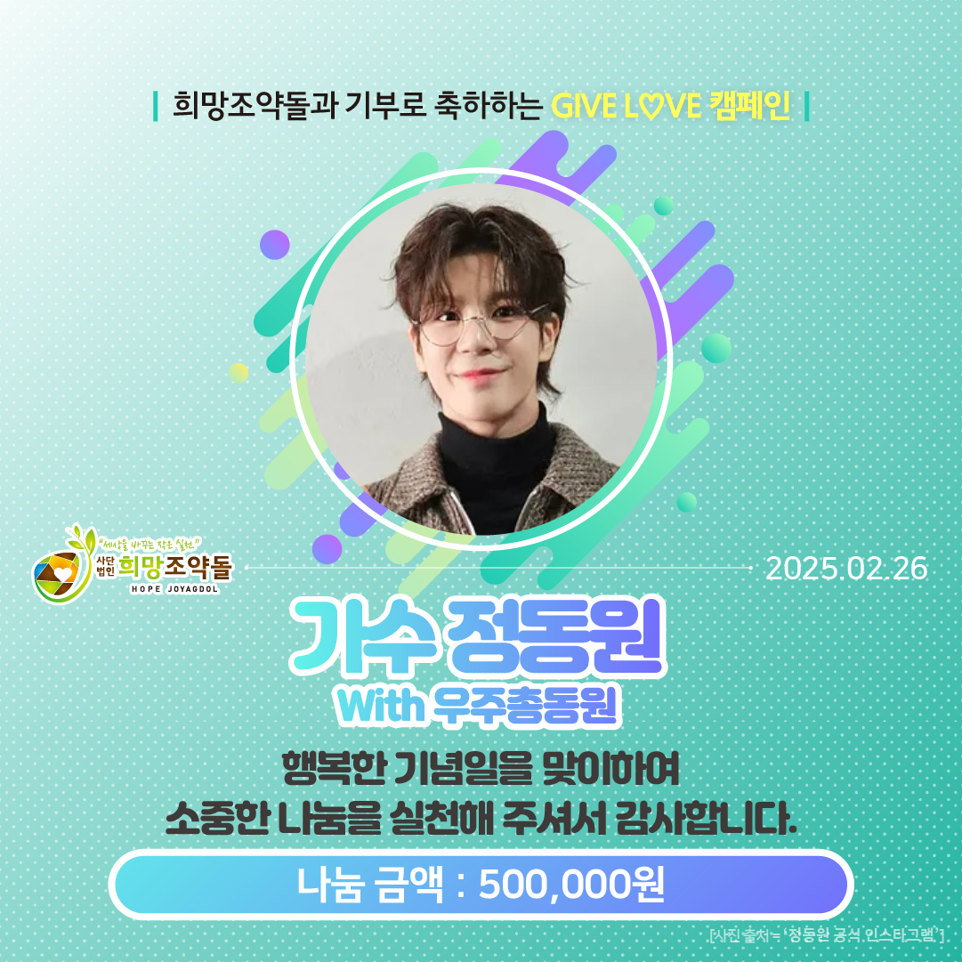 포도알 2025년 1월 트롯 스타덤 1위로 선정된 #정동원 가수님의 이름으로 팬분들께서 화상아동에게 힘이 되는 후원을 해주셨어요.