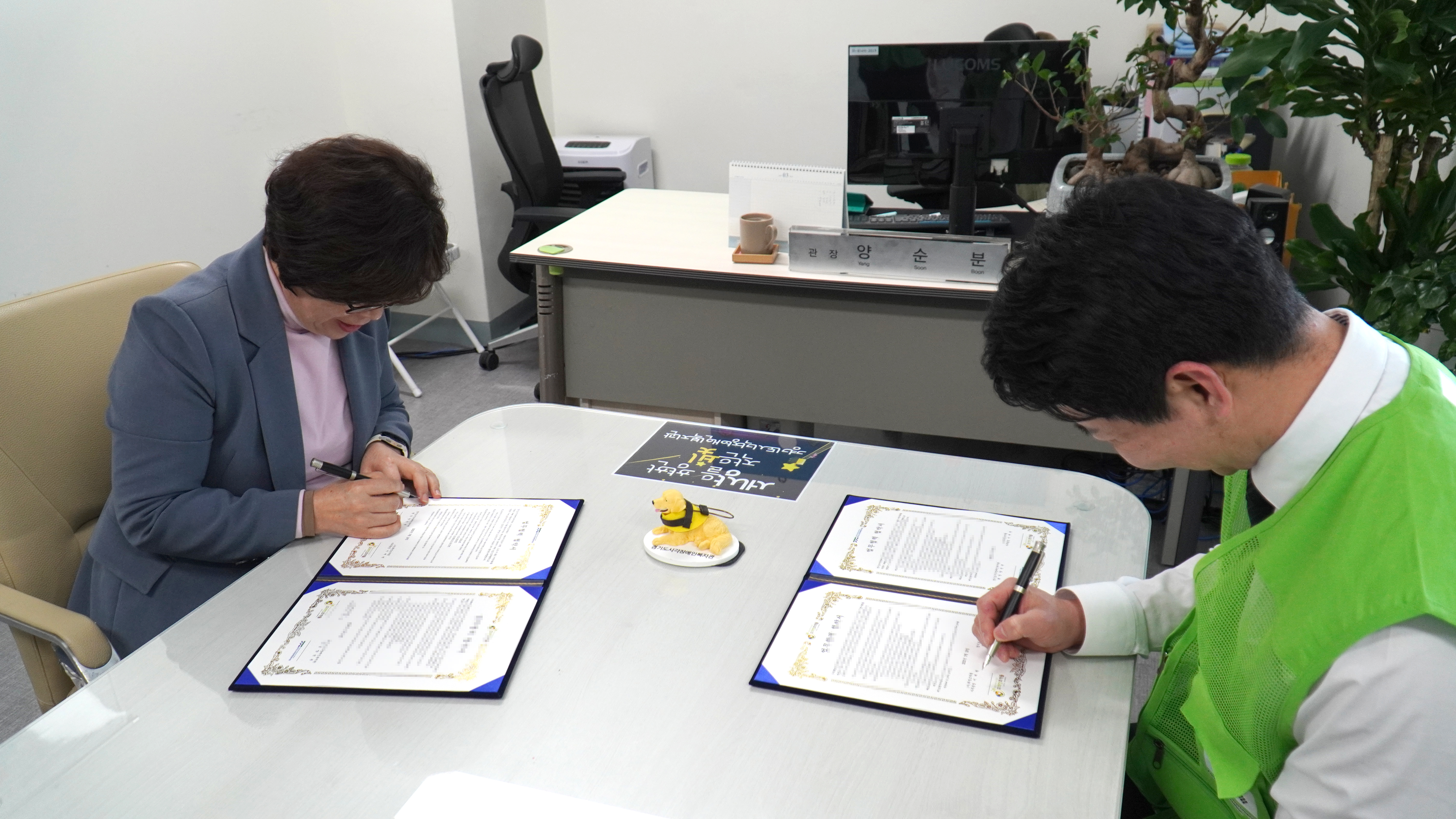 협약식 당일에도 리트리버 모형이 자리에 있어,