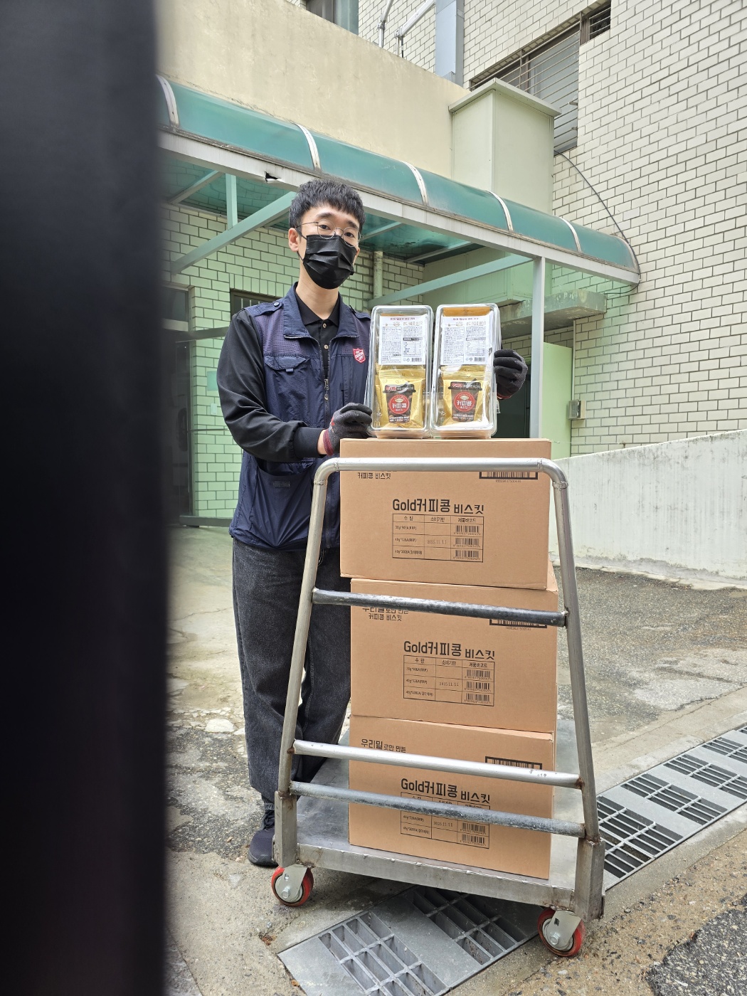이번에는 커피콩 비스킷 수백여 개를 기부해,