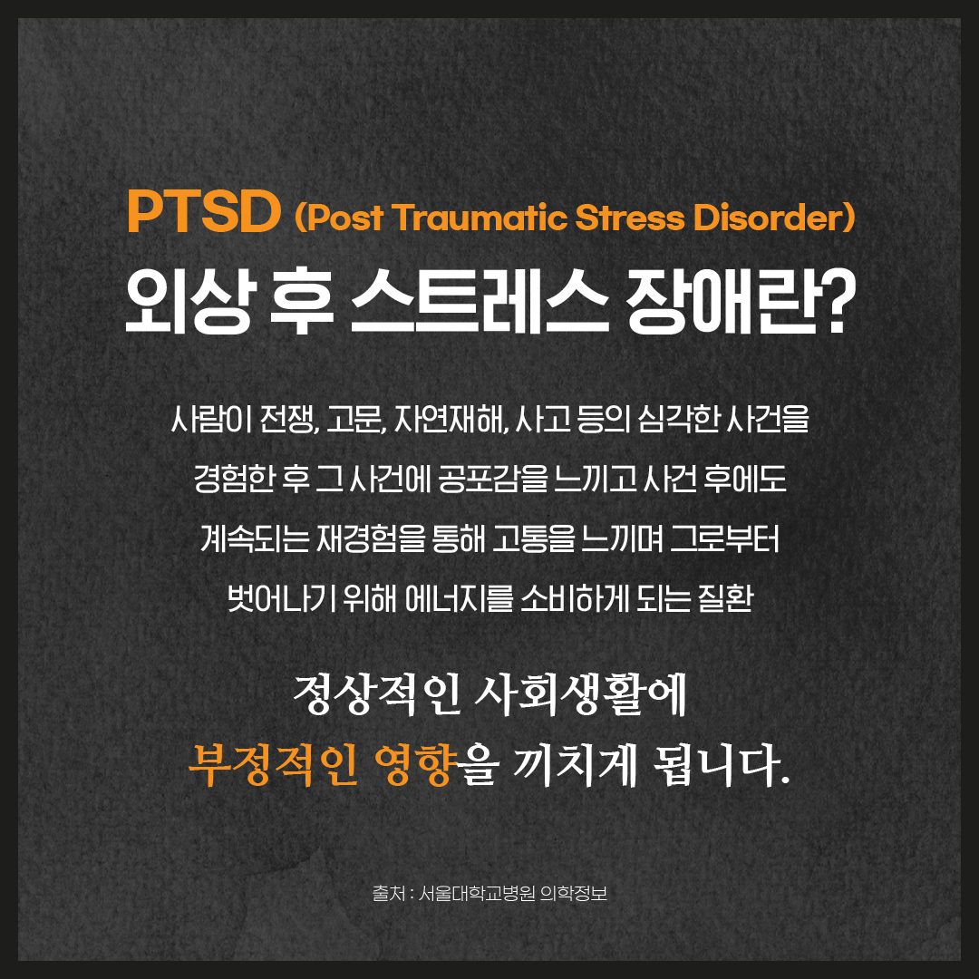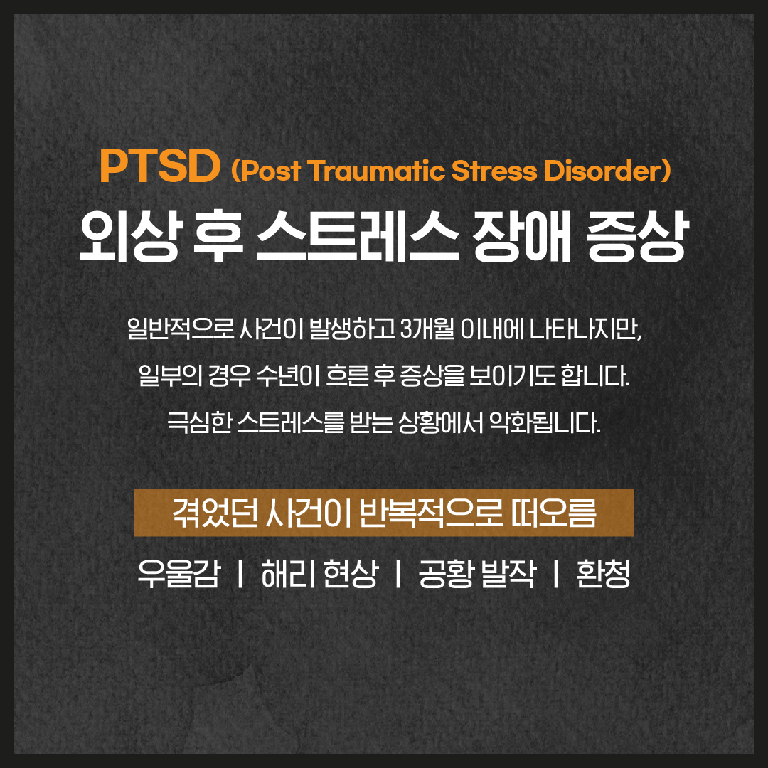 PTSD(외상 후 스트레스 장애)를 호소하는 분들이