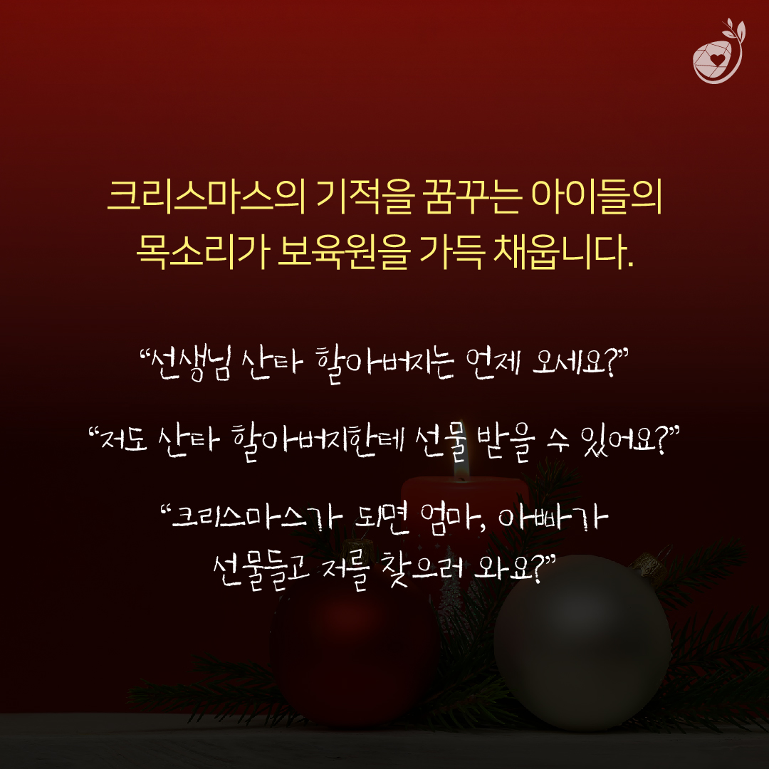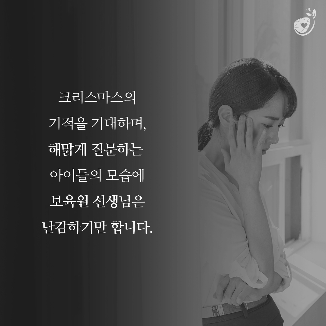"크리스마스가 되면 엄마, 아빠가 선물들고 저를 찾으로 와요?"